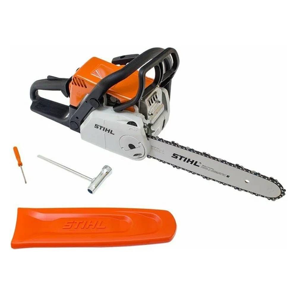 Бензопила Stihl MS 180C-ВЕ 16" является улучшенной версией пилы Stihl MS 180 - у нее есть система облегчения запуска ErgoStart и боковое натяжение цепи без использования инструмента. Инструмент подходит для заготовки дров, формирования крон деревьев, сучков, возведения деревянных конструкций, распиливания стволов деревьев, а также выполнения других несложных хозяйственных работ. Цепная бензопила обладает высокими режущими способностями, широкой функциональностью и небольшим весом. Высокий уровень эргономики обеспечивает удобство эксплуатации независимо от сложности поставленной задачи. Устройство оснащено 16-дюймовой шиной (40см), обеспечивающей возможность работать с деревьями диаметром до 35см. Бензиновая пила STIHL MS 180 C-BE имеет современную систему защиты от вибрации. Антивибрационная система располагается в зоне ручек пилы, и значительной мере заглушает вибрацию, передающуюся с двигателя. Инструмент оснащен современной системой смазки, регулирующей количество подачи смазки. Кнопка управления холодным и горячим запуском, включением и выключением инструмента представлена отдельным рычагом. Это делает обращение с пилой безопасным, поскольку рука оператора всегда остается на рукоятке.