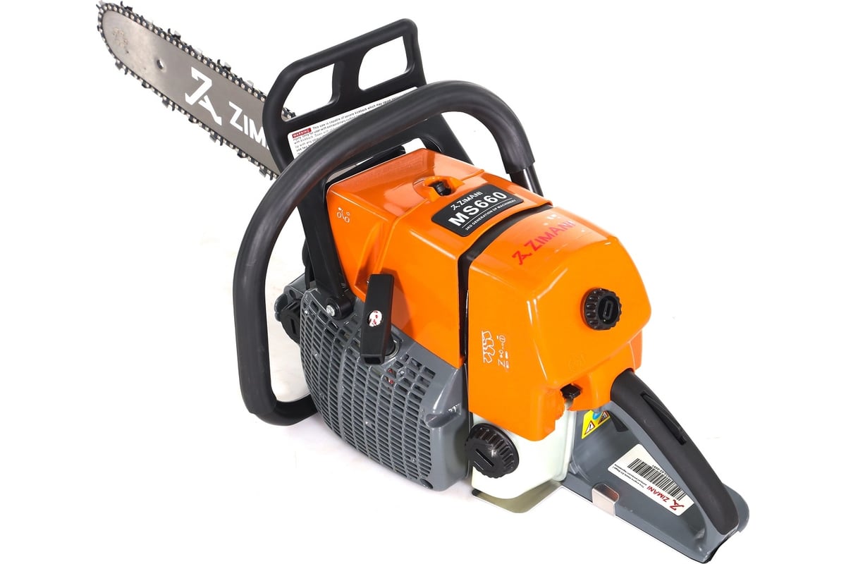 Бензопила ZimAni MS 660 18" это единственная в России пила для профессионального использования с объемом двигателя более 90 куб.см., возможностью установки цельносварных шин со сменными наконечниками до 120 см длиной. Мощность бензопилы ZimAni достигает 7-ми л.с. при максимальных оборотах двигателя 13500 об/мин. Мощная бензопила ZimAni MS 660 для профессионального использования, выдерживающая самые высокие нагрузки . Бензопила ZimAni MS 660 предназначена для использования в густом лесу и для распиловки твердой древесины . Бензопила MS 660 отлично подходит для тяжелой работы по валке деревьев диаметром от 50 см и для заготовки крупноразмерной древесины.