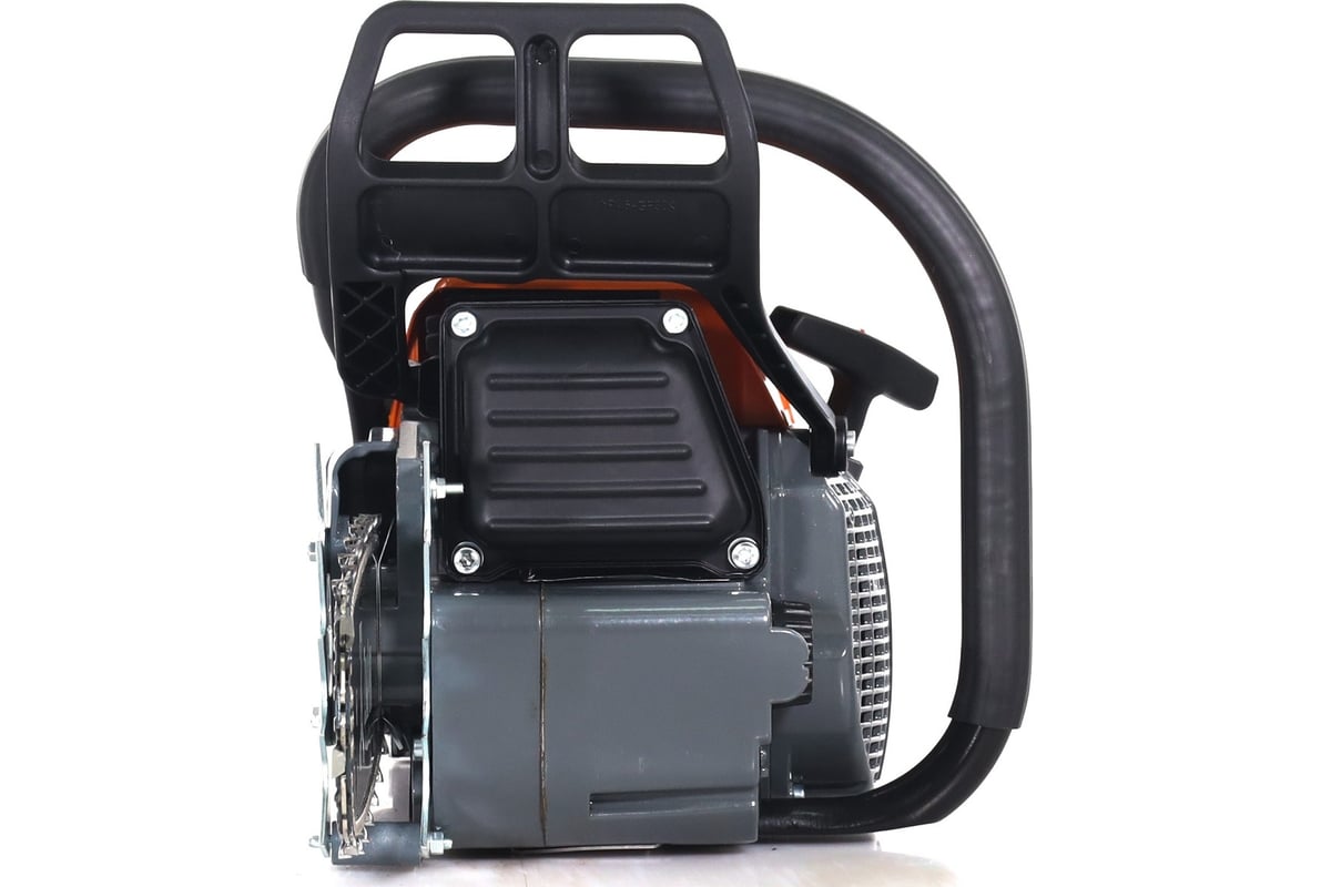 Управление дроссельной заслонкой, необходимое для холодного и горячего запуска, а также выключения пилы, управляется одним отдельным рычагом, что делает управление более комфортным и безопасным, так как нет необходимости использовать обе руки.