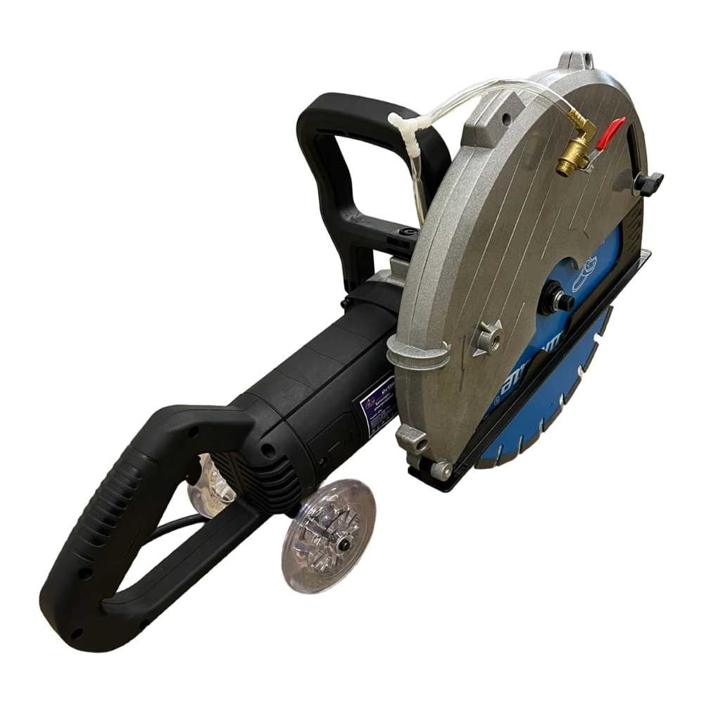 Бетонорез электрический AktiTool ATe-C360 предназначен для разрезания камня, бетона, железобетона и кирпича. Электрический бетонорез (электрорез) позволяет проводить операции внутри здания, исключая выхлопы отработанных газов бензинового двигателя. Электрический бетонорез ATe-C360 снабжен системой подачи воды в зону реза благодаря электрическому насосу, что значительно увеличивает ресурс диска и уменьшает выброс пыли в окружающую среду. Мощный двигатель 3500Вт гарантирует высокую производительность и уверенный рез на максимальную глубину.ХарактеристикиНапряжение питания 220 В / 50 ГцМощность 3500 ВтСкорость вращения диска 4300 об/минМаксимальный диаметр 360 ммПосадочный размер диска 25,4 ммГлубина реза 135 ммВес без диска 9,8 кгВес с диском 11,6 кгВес брутто 13,2 кгДиск 360х12х25,4Помпа электрическая для воды - 1 штШланг для воды - 1 шт