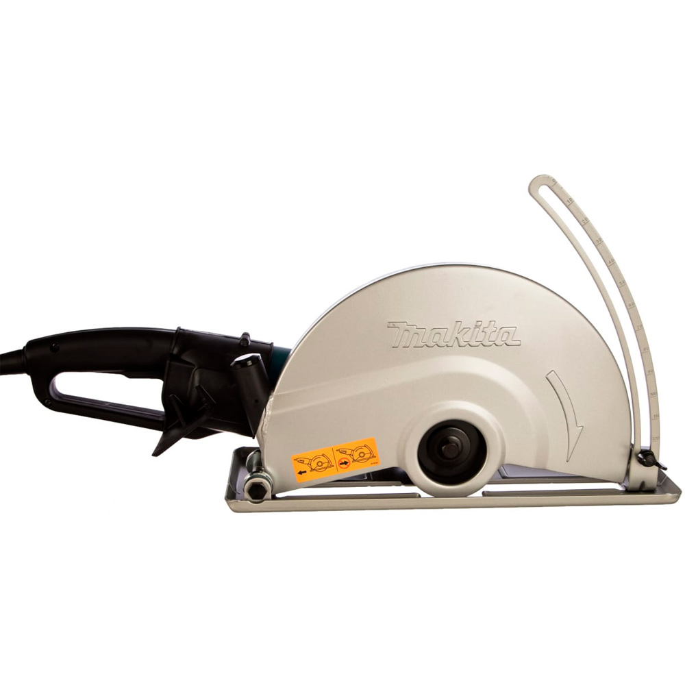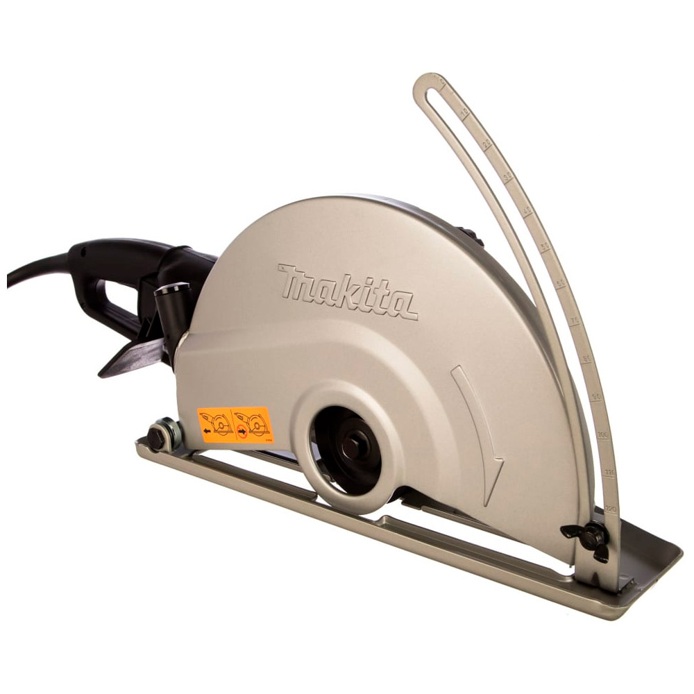 Бороздодел Makita 4114S с функцией плавного запуска и мощным двигателем 2400 Вт. Это надёжный и универсальный инструмент, простой и удобный в использовании, применяется в бытовых условиях и на производстве при больших объёмах работы. Малая и основная рукояти эргономичной формы с нескользящими поверхностями для крепкого удержания агрегата. Глубину распила можно регулировать с помощью шкалы с барашковым болтом. Пильный диск плотно закрыт специальным металлическим кожухом для безопасности оператора во время рабочего процесса. Число оборотов 3500 в минуту. Диаметр диска 355 мм. Вес оборудования 10,3 кг.