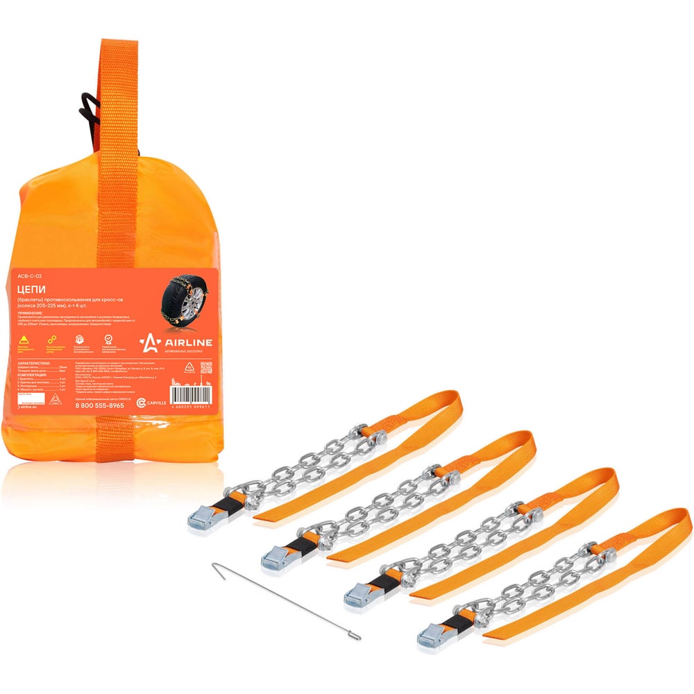 Цепи-браслеты противоскольжения для кроссоверов Airline колеса 205-225 мм, комплект 4 шт. ACB-C-02 будут незаменимыми помощниками во время выездов на природу, на охоту или рыбалку, поездок в деревню и на дачу. Благодаря браслетам противоскольжения получится проехать по легкому бездорожью, преодолеть скользкий подъем, глубокий снег или выбраться из колеи. Не имеет значения, какой привод на машине: передний, задний или полный. Браслеты в разы увеличат проходимость, когда это потребуется.