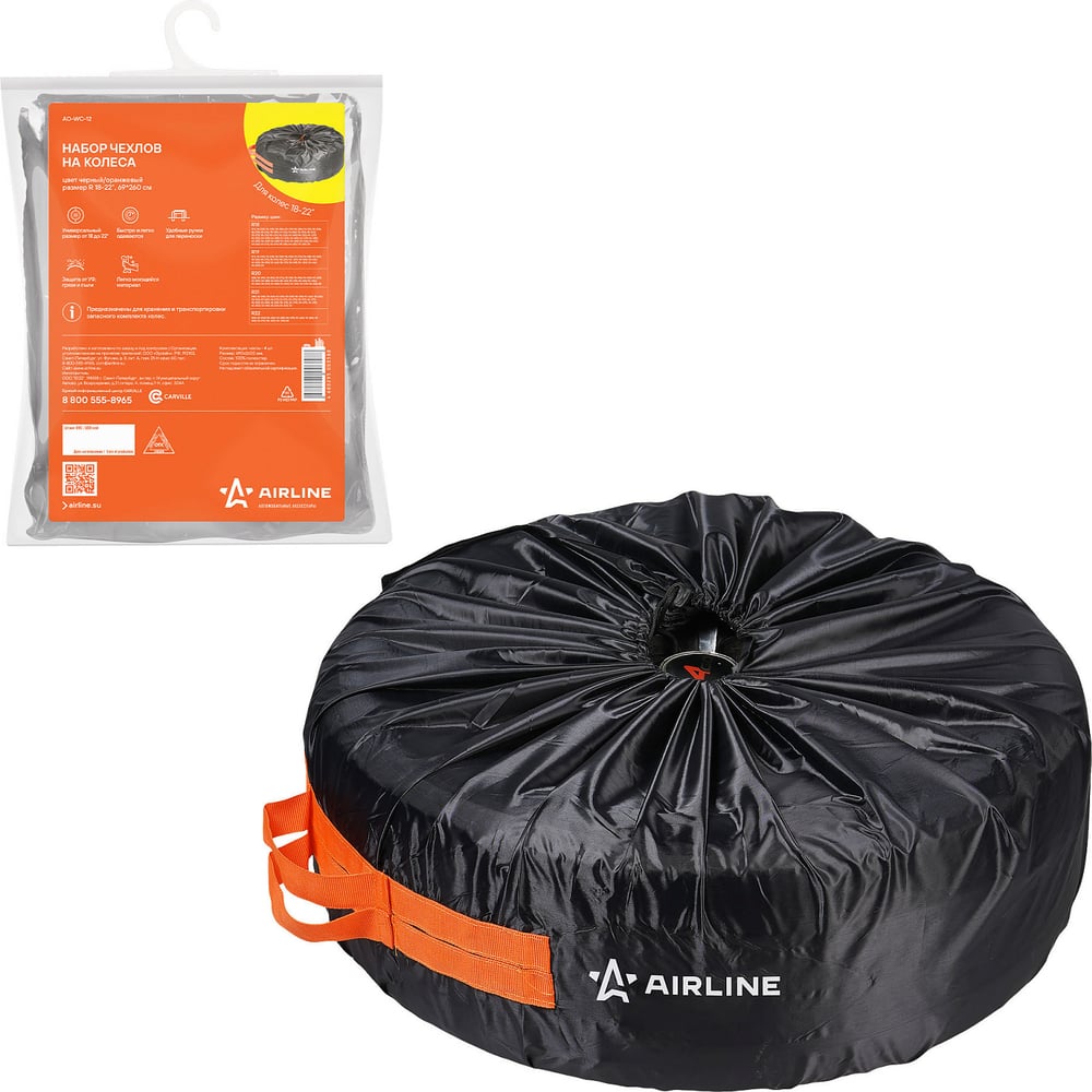 Чехлы для колес, размер Airline R18-22 комплект 4 шт., цвет черный/оранжевый AO-WC-12 поставляются в эргономичной тканевой сумке, оснащенной молнией, а также рукояткой с широкой поверхностью хвата - это обеспечивает удобство при переносе комплекта с одного места на другое, а также при его хранении. Чехлы выполнены из 100% полиэстера, характеризующегося высокой прочностью и устойчивостью к пыли, грязи и влаге.