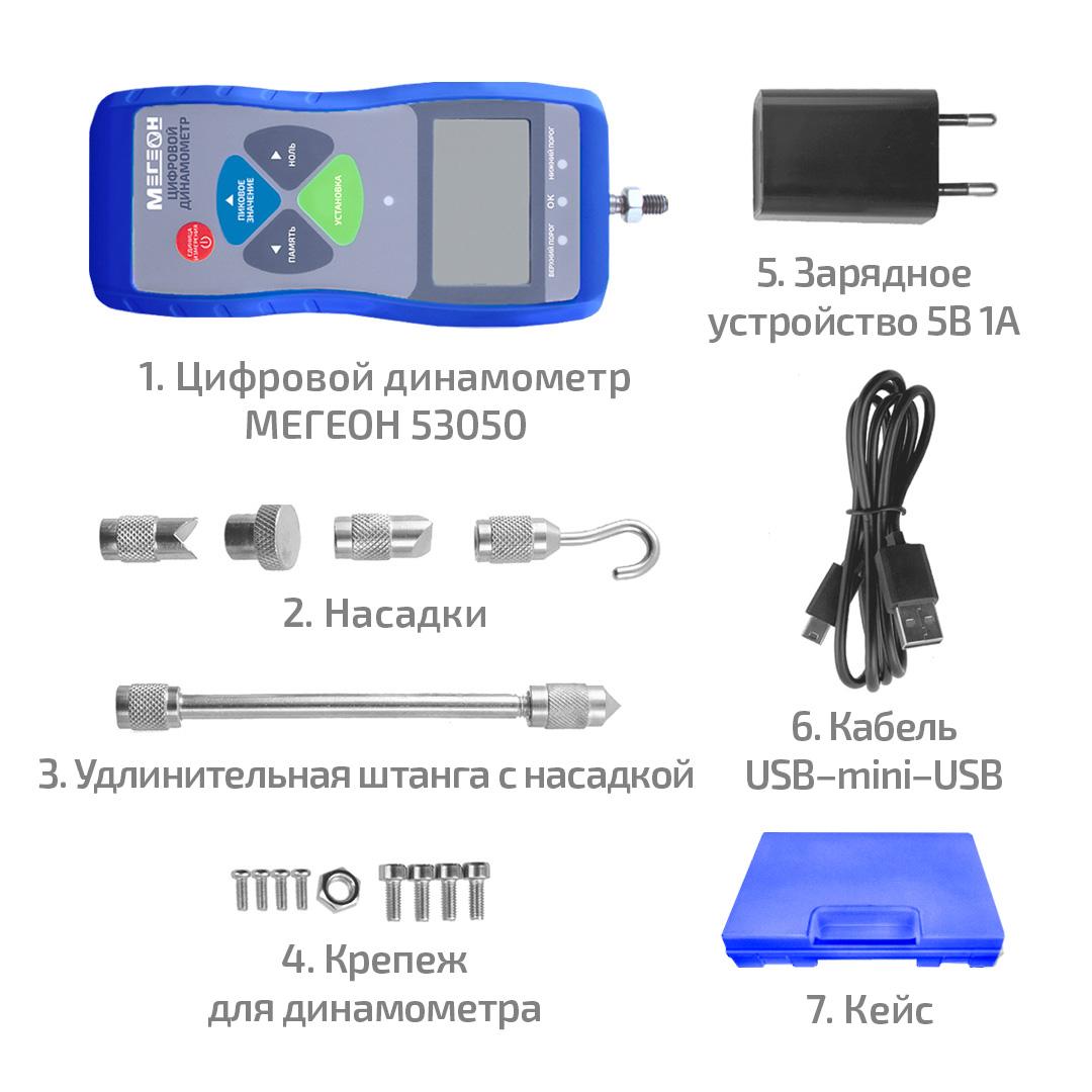 - 1. Цифровой динамометр МЕГЕОН 53050 - 1 шт