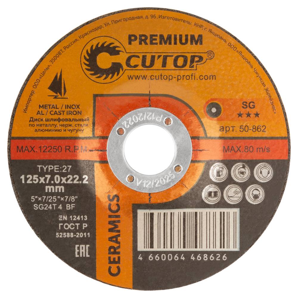 Диск шлифовальный по металлу, нержавеющей стали и чугуну Cutop CERAMICS, серия Premium предназначен для шлифовки сварных швов, зачистки поверхностей, обработки чугуна.