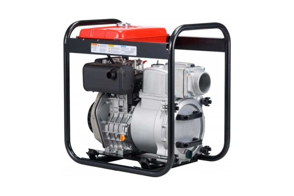 Корпус мотопомпы защищен прочной стальной трубчатой рамой