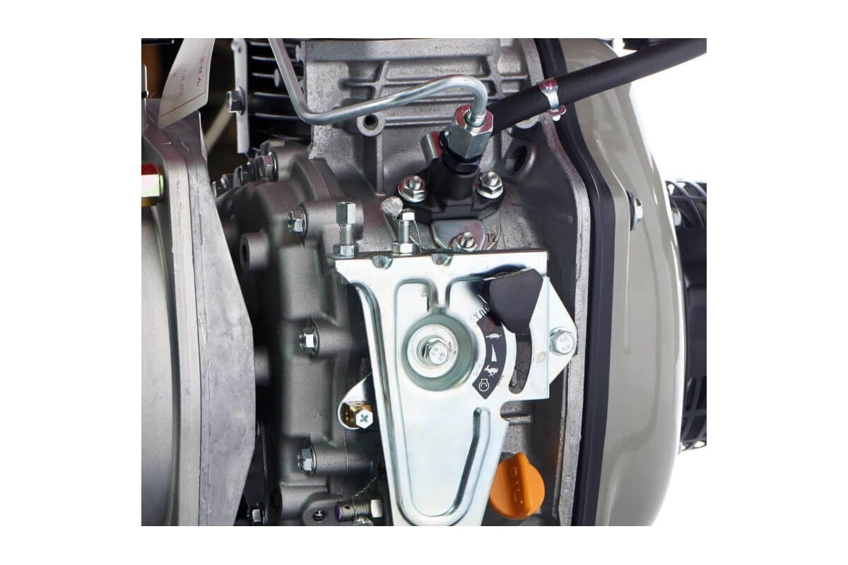 Стальная трубчатая рама обеспечивает защиту двигателя от повреждений и удобство транспортировки мотопомпы.