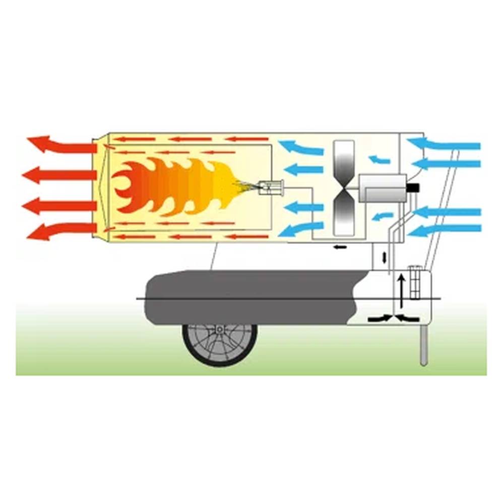 Воздухонагреватель дизельный Master B 230 прекрасно обогреет помещение любой площади. Мощный и работоспособный, он обладает возможностью функционировать в течение продолжительного времени. Система стабилизации пламени с фотоэлементами предотвратит возникновение чрезвычайных ситуаций и обеспечит безопасность как технике, так и ее владельцу. Бак оборудован индикатором, позволяющим контролировать уровень топлива, что даст вам возможность вовремя заправлять оборудование и избегать простоя в работе. Срок службы воздухонагревателя увеличен за счет использования в конструкции лучших материалов и самых современных систем защиты.