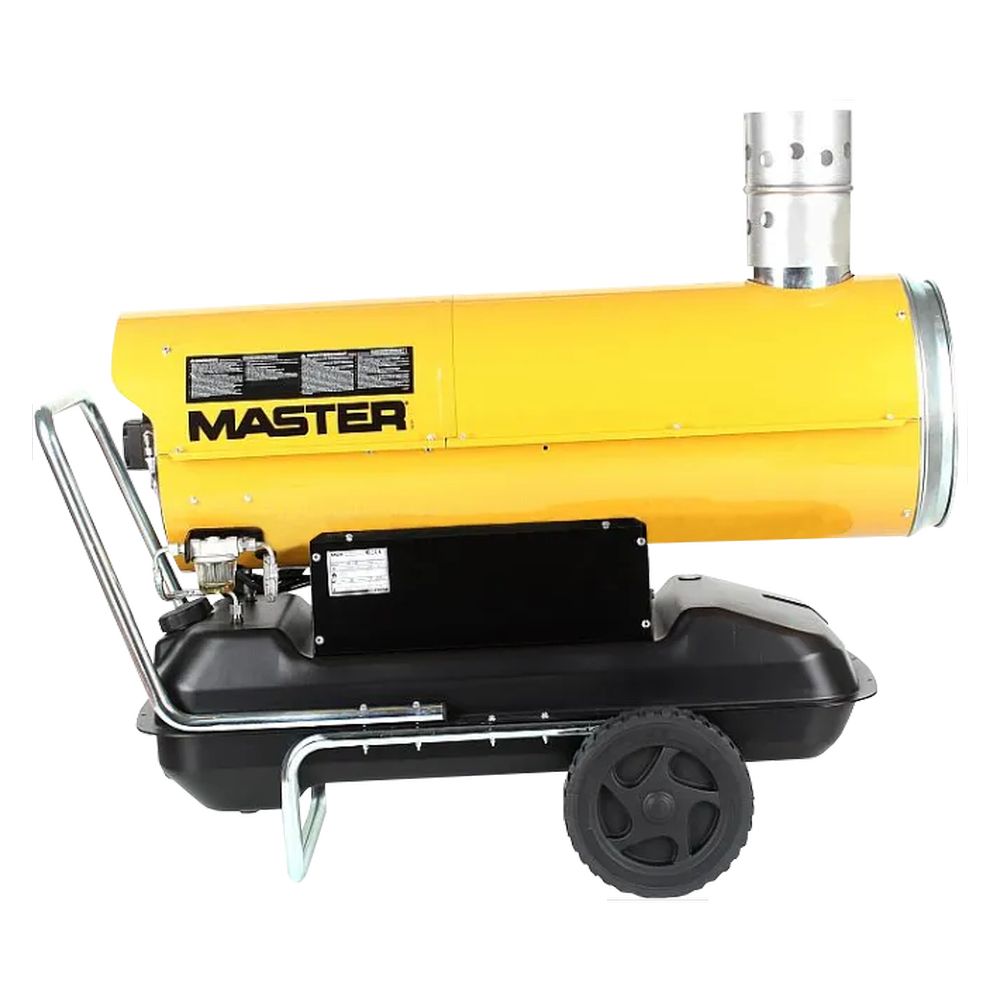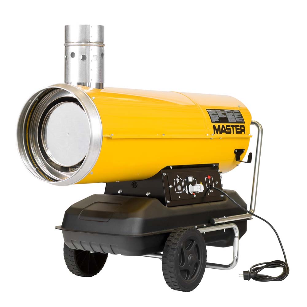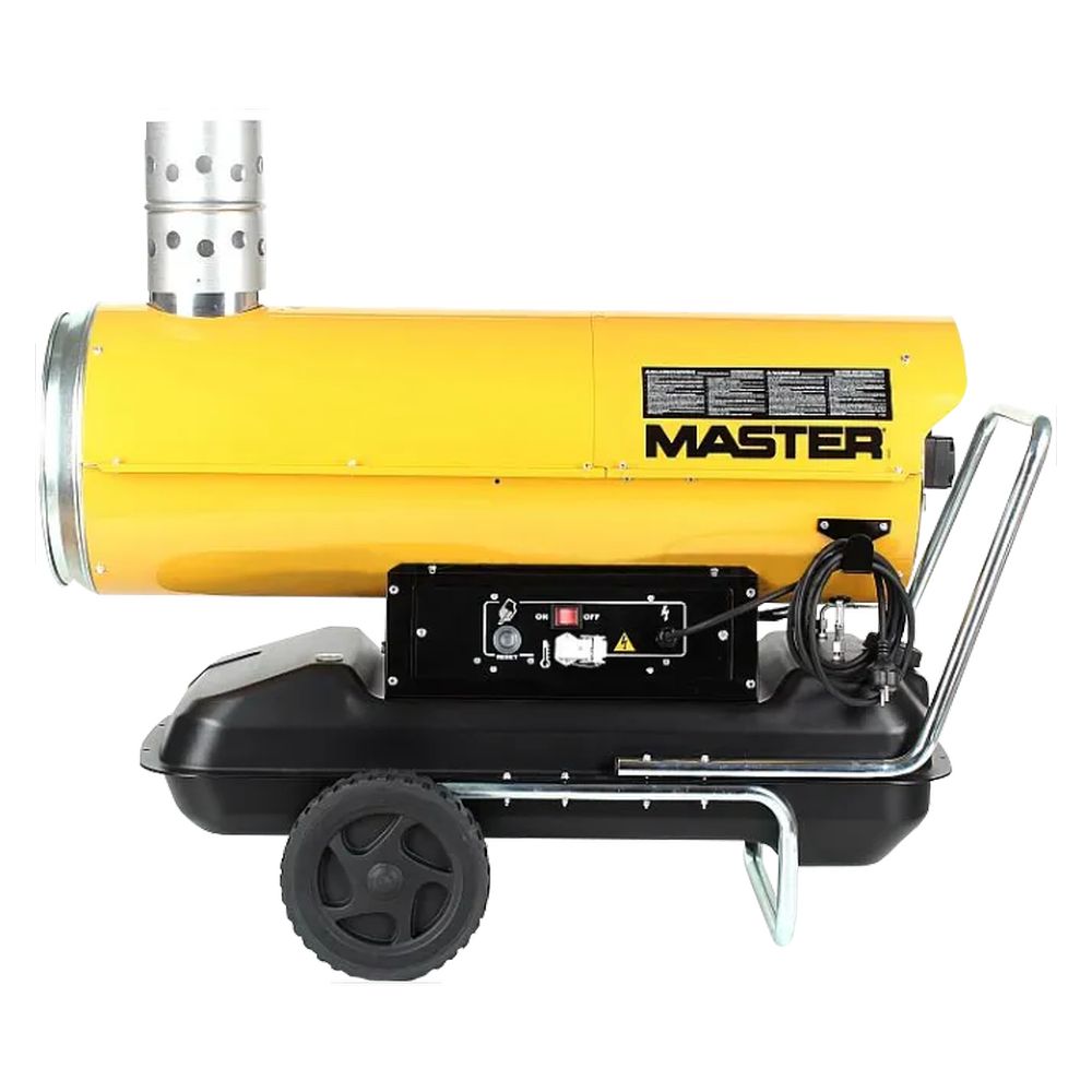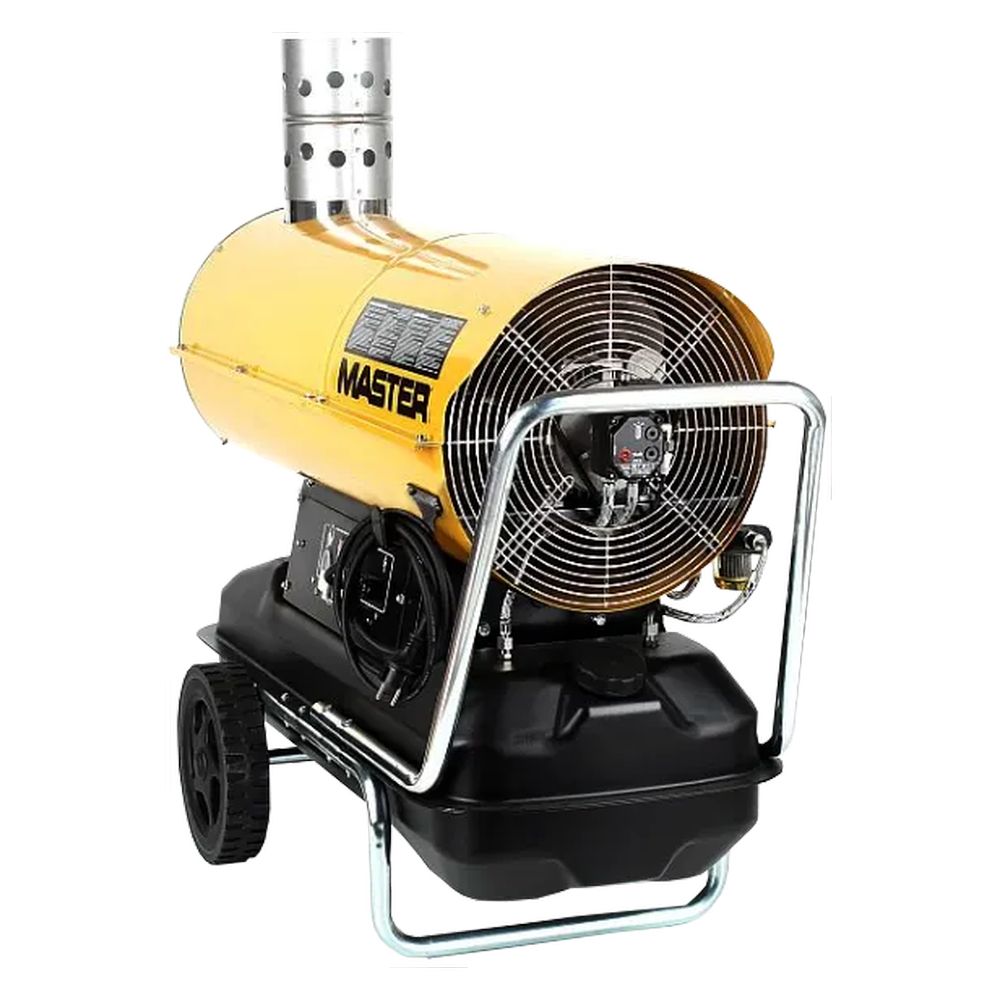 Дизельный воздухонагреватель Master BV 110 E работает на дизельном топливе или керосине. Он обладает тепловой мощностью 33кВт. Эффективное и экономичное решение для прогрева воздуха в различных помещениях (склад, гараж, строительные площадки). Поскольку данный обогреватель работает по принципу непрямого нагрева, он может быть оснащен системой отвода продуктов сгорания. Установив данную систему с выводом на улицу, можно эксплуатировать оборудование в закрытых помещениях, в которых работают люди. Диаметр газоотвода составляет 150мм. Дизельный воздухонагреватель имеет улучшенный теплообменник и отличается высокой экономичностью. За один час работы он потребляет 2,71кг дизеля и обеспечивает выработку 1800 кубометров горячего воздуха.