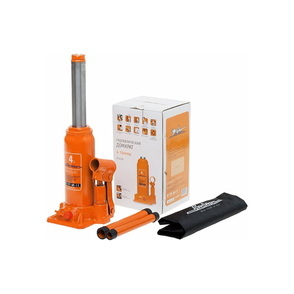 Бутылочный домкрат Airline 4 т, в сумке, MIN - 195 мм, MAX - 380 мм AJ-B-04 обладает простейшей схемой функционирования. Занимает мало места и не требует особых знаний в использовании. Единственное требование – хранение и транспортировка в вертикальном положении. Незаменим при необходимости поднять автомобиль массой до 4 т.