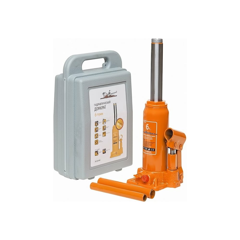 Бутылочный домкрат Airline 6 т, в кейсе MIN - 200 мм, MAX - 405 мм AJ-B-06K обладает простейшей схемой функционирования. Занимает мало места и не требует особых знаний в использовании. Единственное требование – хранение и транспортировка в вертикальном положении. Незаменим при необходимости поднять автомобиль массой до 6 т.