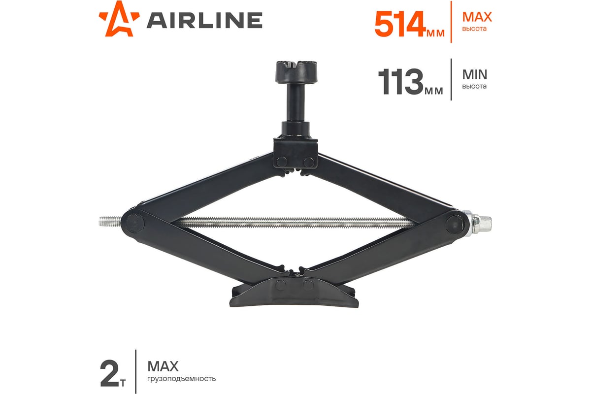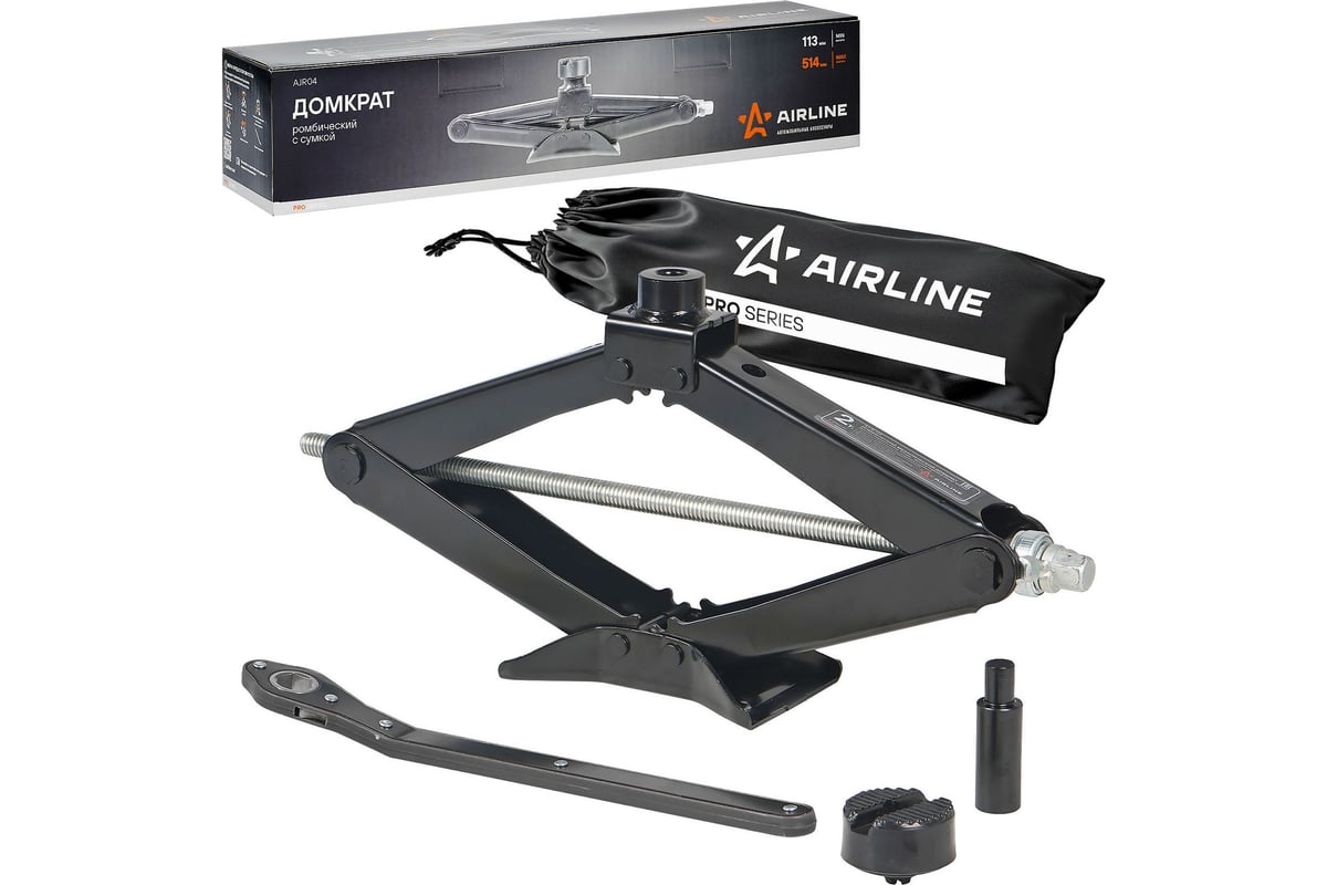 Домкрат ромбический 2т 113-514мм PRO (удлинитель, ручка трещотка) сумка AIRLINE AJR04