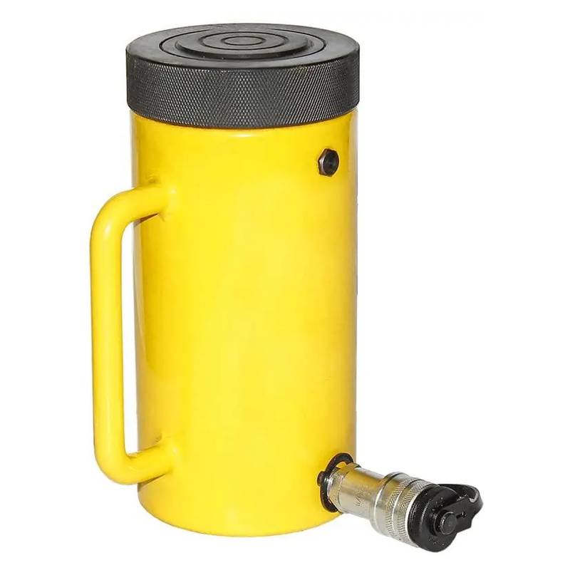 Домкрат гидравлический грузовой с фиксирующей гайкой и с пружинным возвратом штока Инстан ДГ100-100ПГ (усилие 100 тонн, ход штока 100 мм) предназначен для подъема и безопасного удержания поднятого груза в течение длительного времени. В качестве привода используется ручной, ножной или электрический гидравлический насос одностороннего действия. Поршень домкрата не имеет механического ограничения на выдвижение. Поэтому, при достижении максимальной величины выдвижения штока, будет происходить выброс масла через пробку с отверстием, расположенную рядом с фиксирующей гайкой. Это требуется для предотвращения выхода поршня за пределы гильзы цилиндра.