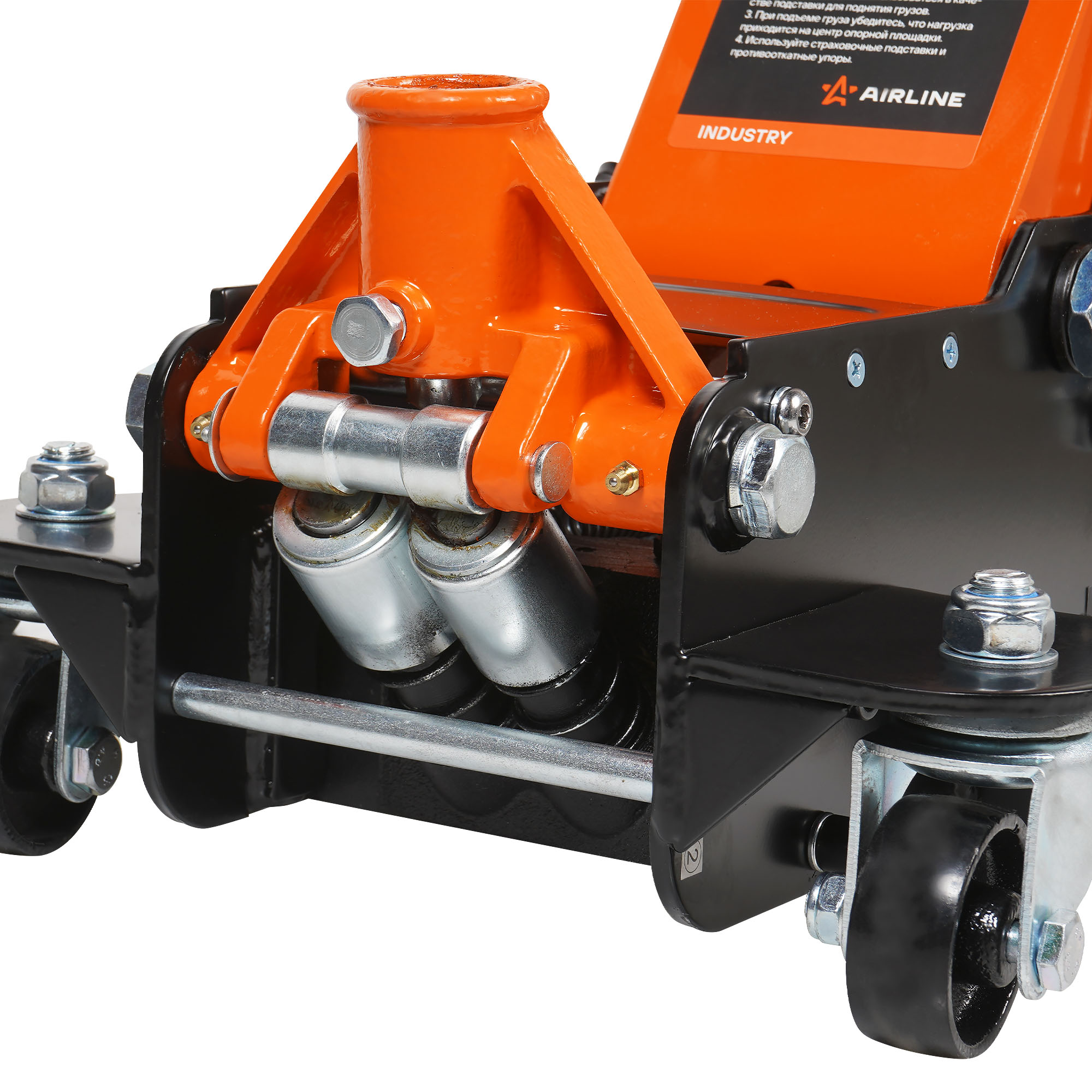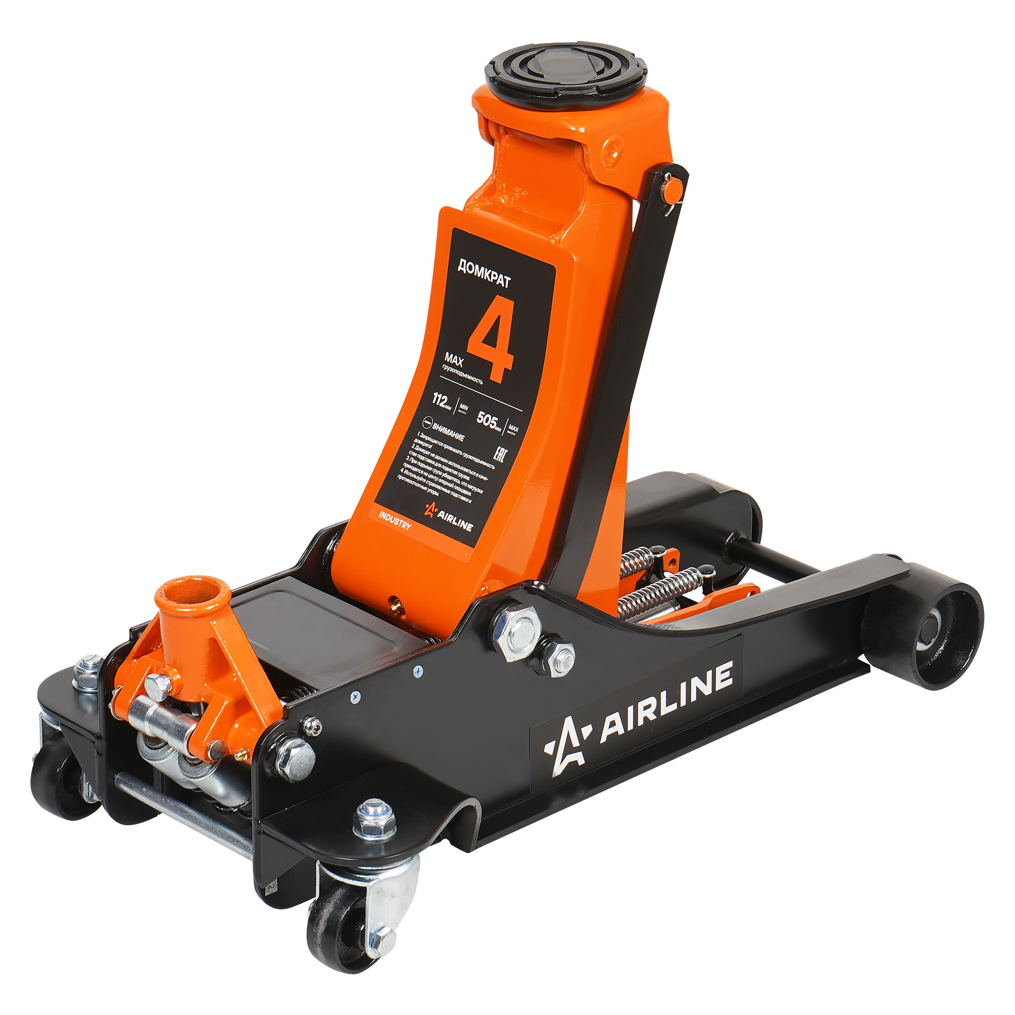 Подкатной домкрат AIRLINE грузоподъемностью 4 т предназначен для подъема всех видов автомобилей массой до 5 т. Высота подхвата - 112 мм. Высота подъема - 505 мм. Домкрат входит в линейку INDUSTRY. Предназначен для профессионального применения в автосервисах и шиномонтажных мастерских, а так же для личного использования. Вес домкрата составляет 42 кг. Внушительный рабочий ресурс достигается за счет усиленной конструкции рамы, прочных внутренних механизмов, износостойких компонентов. Позволяют эксплуатировать домкрат при самых агрессивных нагрузках в течении длительного периода времени. Внутри насоса используется морозостойкое масло, которое сохраняет работоспособность при отрицательных температурах.