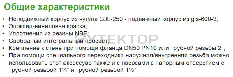 Внешнее соединительное устройство DAC E позволяет выполнять установку и техническое обслуживание насоса без опорожнения резервуара, а также удерживает всасывающее отверстие насоса на оптимальной высоте. Корпус выполнен из чугуна, уплотнение из резины NBR.