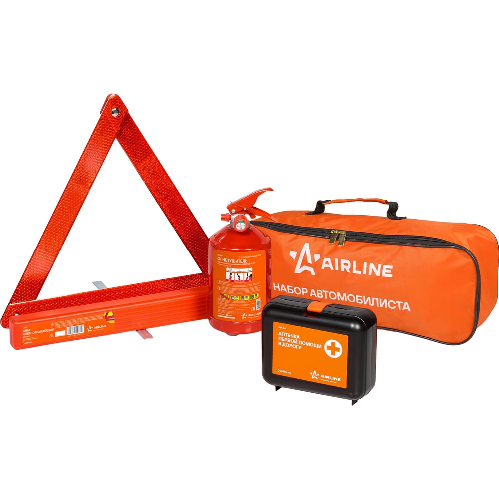 Набор автомобилиста Airline ЭКО ANA-00 включает в себя необходимые в случае возникновения аварийной ситуации принадлежности. Складной знак занимает минимум места при хранении, легко заметен на дороге благодаря своей яркой окраске. Компактная аптечка полностью соответствует современным требованиям ГИБДД.