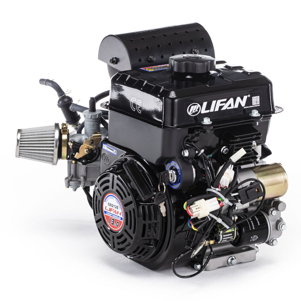 Двигатель бензиновый LIFAN GS212E 7A - гибридная модель мотоциклетного двигателя и бензинового двигателя общего назначения. Это, на сегодняшний день, самый высокооборотистый двигатель предлагаемый компанией Lifan Power. Номинальное число оборотов двигателя составляет 6000 oб. в мин. Благодаря такой скоростной характеристике данная модель двигателя подходит для совместной работы с вариатором в качестве трансмиссии.