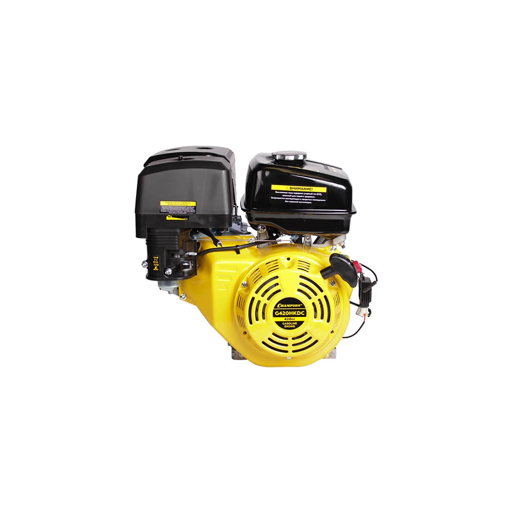 Двигатель 15 л.с. CHAMPION G420HKDC 4-хтактный, одноцилиндровый, с воздушным охлаждением. Подходит для использования с садовой техникой. Посадка вала - шпонка. Оснащен катушкой освещения.