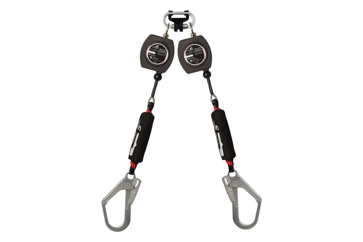 Механизм втягивания троса уменьшает глубину возможного падения, осуществляет быструю блокировку, снижая нагрузку и риск получения травмы при падении.