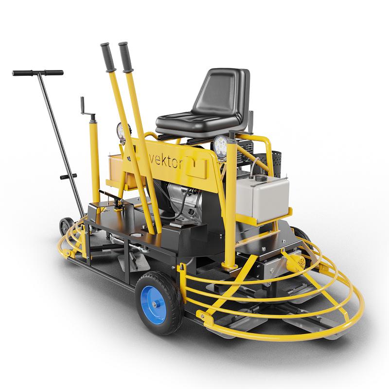 Здесь предусмотрено специальное сиденье для оператора, который сидя управляет процессом заглаживания с помощью рычагов. Производительность и эффективность двухроторных машин выше благодаря минимизации ручного труда, большему весу установки и повышенному качеству обработки. Поэтому их используют для работ в промышленных объемах.