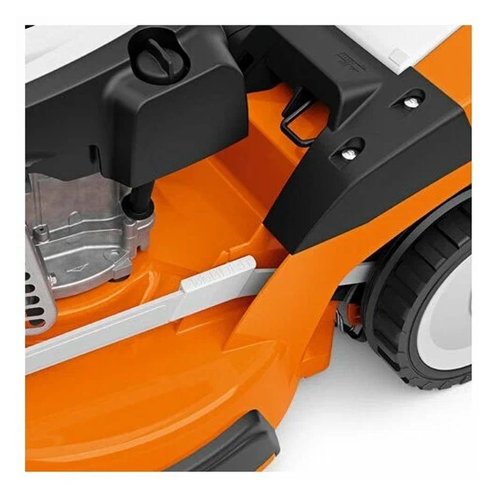 Электрическая газонокосилка STIHL RМE-443.0 c шириной реза 41см газонокосилка подходит для газонов небольшой и средней площади до 600м2. За счет подпружиненного механизма центральной регулировки устанавливается высота скашивания и на шкале видна актуальная высота. Нож создает поток воздуха в аэродинамическом корпусе, поднимающий траву перед скашиванием и задувающий скошенную траву в травосборник через встроенную систему воздуховодов. Благодаря направленным вниз воздушным отверстиям и закрытой крышке травосборника скошенная трава и пыль не вылетают вверх. Встроенный индикатор заполнения травосборника сообщит, когда настанет пора опустошать его. Состоящий из двух частей травосборник упрощает открывание и опустошение. Встроенное приспособление для разгрузки сетевого кабеля от натяжения надёжно фиксирует удлиняющий кабель на панели с выключателями и разъёмами электрокосилки. В корпус встроены две ручки для переноса. Они позволяют быстро разгружать газонокосилку и переворачивать ее на бок. Корпус и аэраторов изготавливаются из ударопрочного, термо- и УФ-стойкого полимера.