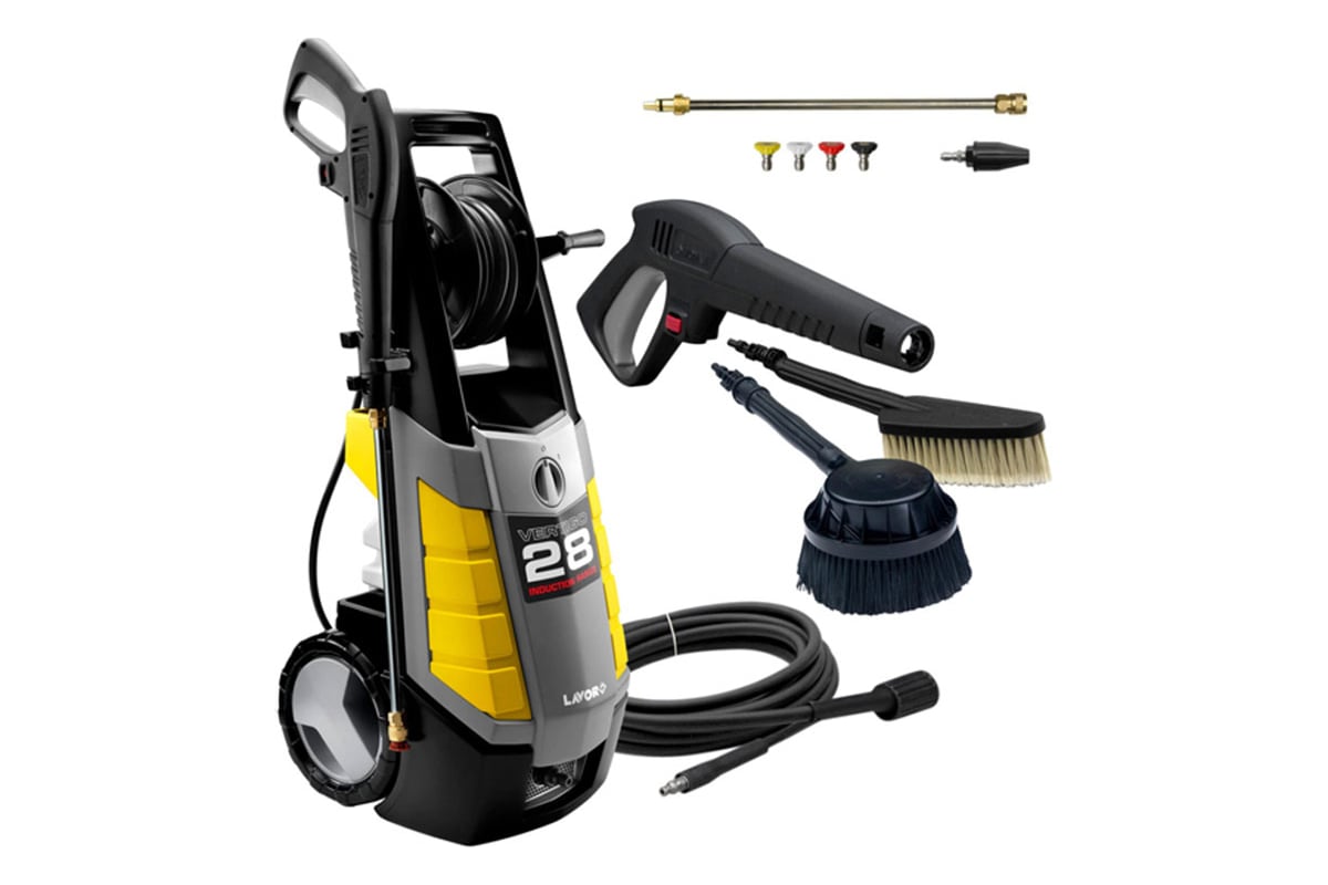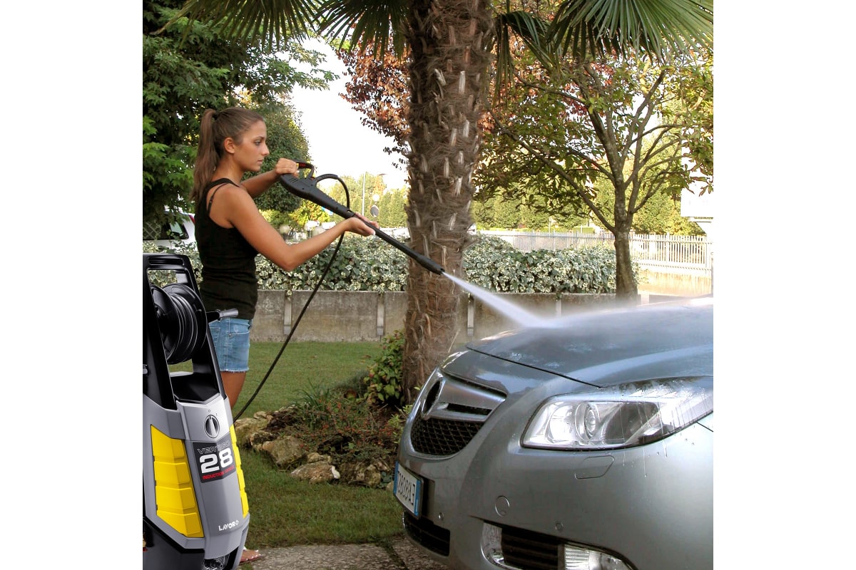 Мощность электрического двигателя равна 2800 Вт. При такой значительной мощности бытовой аппарат высокого давления LAVOR Vertigo 28 имеет производительность до 510 л в час. Комплект поставки минимойки для дачи LAVOR Vertigo 28 включает несколько насадок. В том числе четыре форсунки для создания струи разной формы и щетки для очистки террасы и других поверхностей.