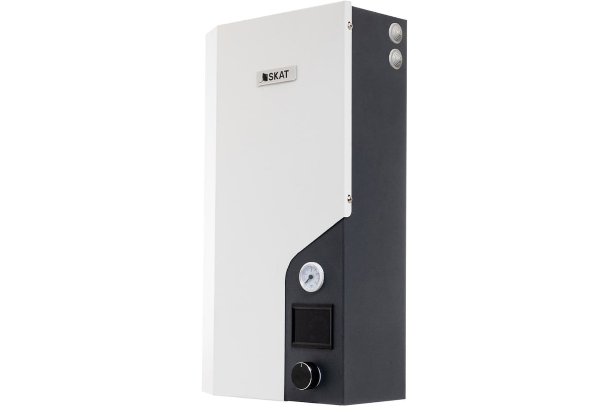 Котлы электрические отопительные SKAT SILVER ALUM с револьверным симисторным управлением ТЭНами и косвенным нагревом ГВС предназначены для обогрева и обеспечения горячего водоснабжения в жилых и производственных помещениях в системах с принудительной циркуляцией теплоносителя. Электрокотел рассчитан на подключение к автономной системе отопления, в которой в качестве теплоносителя может быть применена вода или другие незамерзающие жидкости, специально сертифицированные для использования в отопительных системах. Электрокотел преобразует электрическую энергию в тепловую посредством работы трех электронагревателей (ТЭНов), заключенных в алюминиевый теплообменник. Движение теплоносителя в системе отопления осуществляется циркуляционным насосом