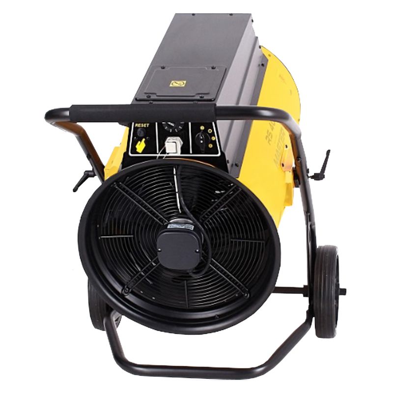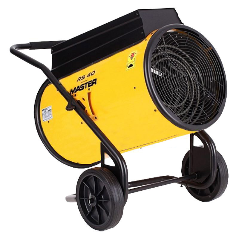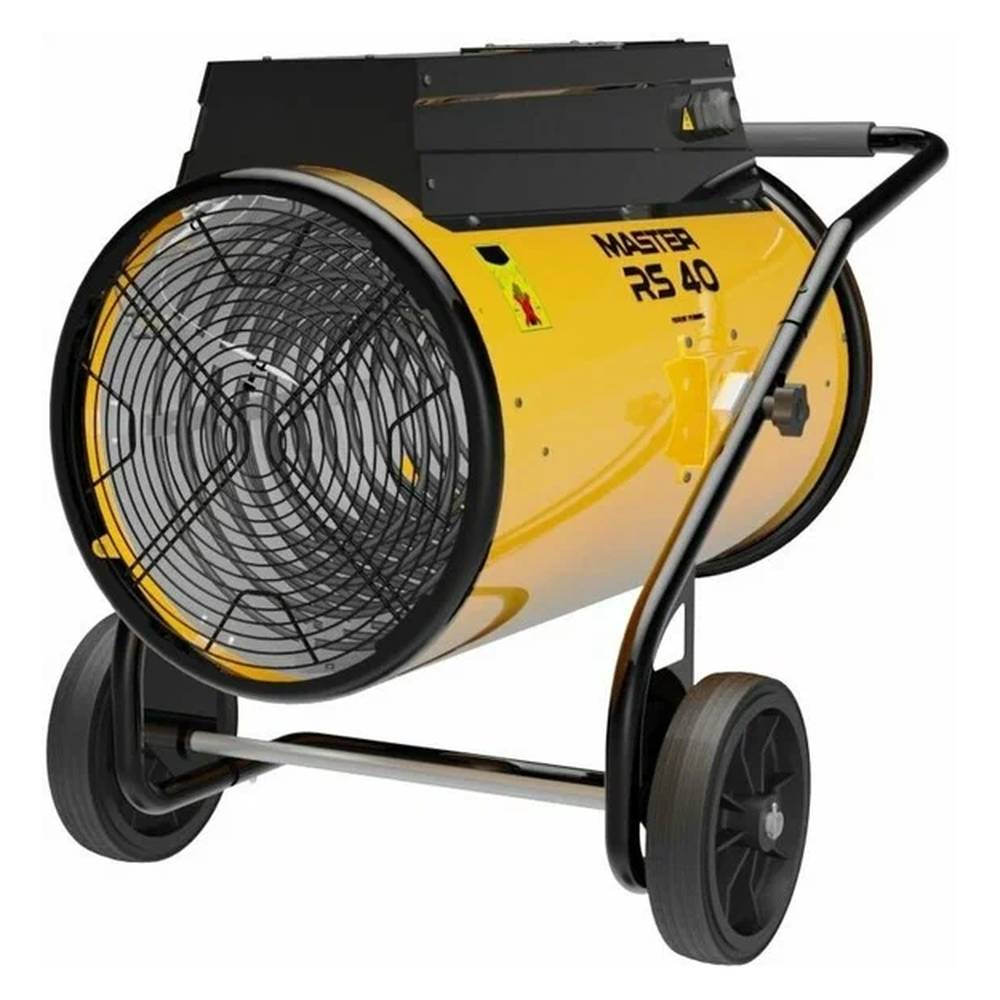 Электрический воздухонагреватель Master RS 40 это надёжный обогреватель для обогрева средне- и крупногабаритных закрытых помещений. Также данный вариант часто используют в монтажном и строительном деле. Пушка обладает привлекательным дизайном и имеет ярко-жёлтый корпус, изготовленный из стали. Он достаточно надёжен для того, чтобы защитить внутренние элементы от механических повреждений и имеет компактные размеры. Это позволяет располагать оборудование даже в условиях ограниченной площади. Что касается веса, то он составляет 46кг, поэтому для удобства транспортировки производитель предусмотрел подставку с двумя обрезиненными колёсами, ручкой и опорой, исключающей переворачивание во время работы.