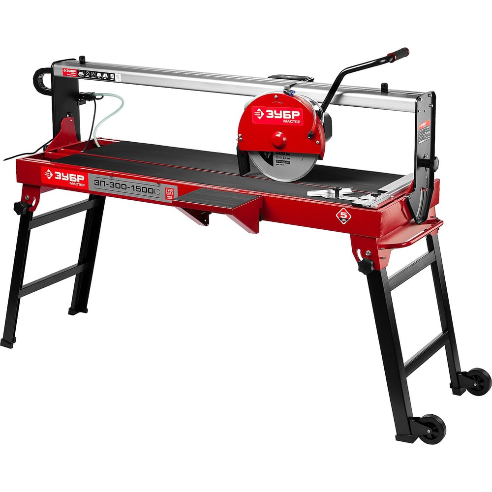 Длина реза при помощи электроплиткореза МАСТЕР ЗУБР ЭП-300-1500C достигает 1200 мм. Агрегат предназначен для работы со всеми видами плитки. Плиткорез имеет подвижную головку диска, что исключает необходимость "протягивания" плитки через диск. Предусмотрена принудительная подача воды на место реза, это предотвращает образование пыли и снижает нагрузку на двигатель.