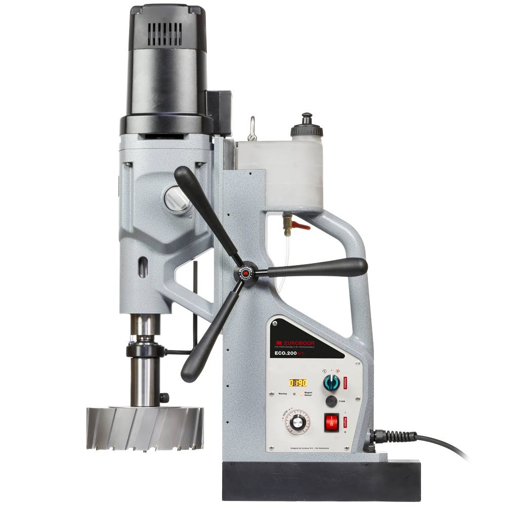 Магнитный сверлильный станок ECO.200S/T это самая большая и мощная сверлильная машина в линейке Euroboor ECO. Благодаря максимальной производительности сверления 200 мм, а также возможностям нарезания резьбы и зенкерования, этот станок позволяет выполнять поистине экстремальные операции на заготовках и в местах, которые обычно невозможно выполнить. Регулируемая скорость и реверс делают этот станок идеальным для нарезания резьбы. Кроме того, он обеспечивает точность, необходимую для подбора сверла к кольцевой фрезе и сверлимому материалу. Более твердые материалы, такие как нержавеющая и легированная сталь, должны сверлиться на более низких скоростях, в то время как более мягкие материалы, такие как алюминий, могут сверлиться на более высоких скоростях. ECO.200S/T оснащен бесщеточным двигателем, что делает его более эффективным по сравнению с щеточными двигателями. Бесщеточные двигатели более эффективны, чем щеточные, поскольку в них отсутствуют трение и потери энергии, связанные со щетками. В результате бесщеточные двигатели, как правило, вырабатывают большую мощность и потребляют меньше энергии, что позволяет увеличить срок службы аккумуляторов и снизить эксплуатационные расходы.