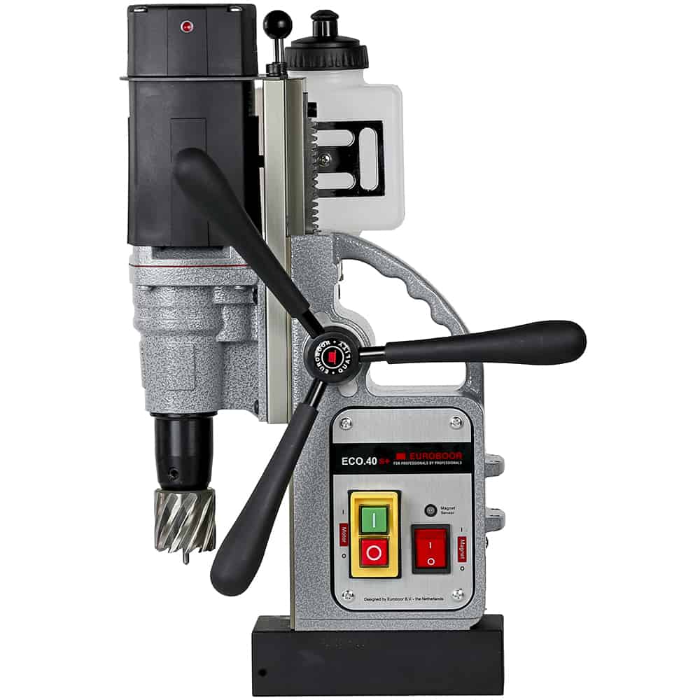 Сверлильный станок на магнитном основании Euroboor ECO.40S+ является легким станком с диаметром сверления до 40 мм. В ECO.40S+ могут быть установлены кольцевые сверла с глубиной сверления до 110 мм. Магнитный станок имеет редуктор в масляной ванне, инновационную электронику, которая обеспечивает высокий уровень безопасности, снижает риск повреждения станка, инструмента и заготовки и защищает пользователя в случае чрезмерных вибраций или внезапных смещений станка. Срок службы увеличивается, а затраты на обслуживание уменьшаются.