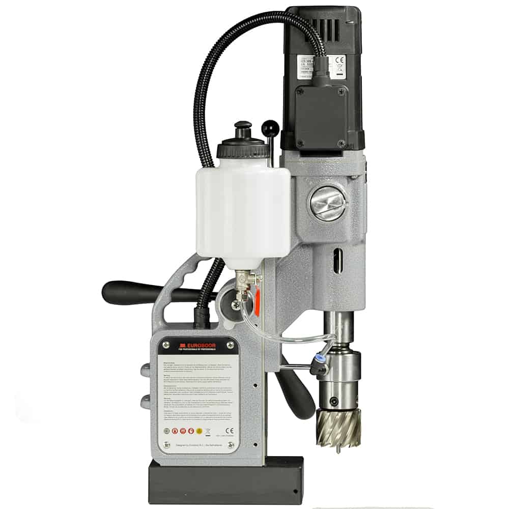 Магнитный сверлильный станок ECO.50S+ является усовершенствованной версией наиболее популярного и проверенного временем станка ЕСО.50 и предназначен для сверления отверстий диаметром до 50 мм. Новая модель теперь весит всего 11,2 кг за счет нового облегченного магнита. Магнитный станок имеет редуктор в масляной ванне, инновационную электронику, которая обеспечивает высокий уровень безопасности, снижает риск повреждения станка, инструмента и заготовки и защищает пользователя в случае чрезмерных вибраций или внезапных смещений станка. Срок службы увеличивается, а затраты на обслуживание уменьшаются.