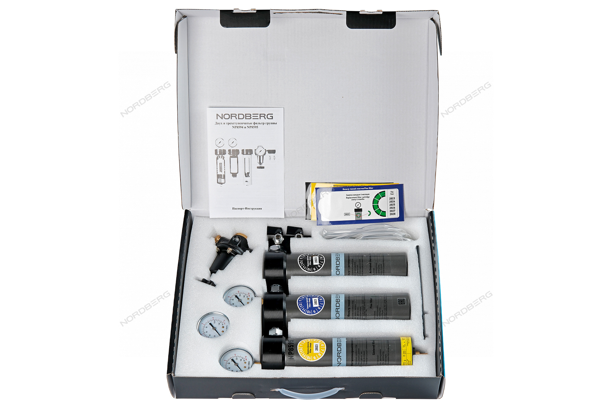 Трехступенчатая фильтр-группа NORDBERG NP8595 подходит для краскопультов с манометрами и регулятором давления предназначена для окрасочных камер и зон подготовки к окраске.