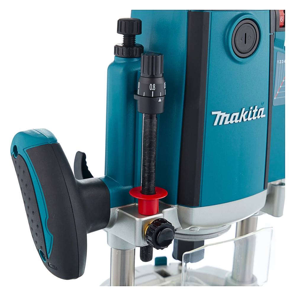 Фрезер Makita RP2302FC02 предназначен для профессиональной обработки дерева, пластмассы и схожих материалов. Инструмент может делать прямые и криволинейные пазы, обрезать простые и многослойные кромки, работать с профильной и кромкообрезной направляющей и выполнять фрезерование по кругу. Инструмент с щеточным двигателем мощностью 2300Вт имеет функцию плавного пуска, защищающую двигатель от скачков напряжения и электронную регулировку числа оборотов. Замена угольных щеток возможна без разбора всего корпуса. Оборудование с 6 скоростями работы позволяет добиться высокого качества обработки заготовок. Максимальный размер цанги составляет 12мм, рабочий ход фрезы – 70мм. Регулировка глубины фрезерования выполняется с помощью рычага фиксации или регулировочных винтов. Инструмент оборудован кнопкой блокировки от непреднамеренного включения. Для комфортной работы фрезер оснащен яркой подсветкой и имеет возможность подключения к стационарной системе пылеудаления или строительному пылесосу.