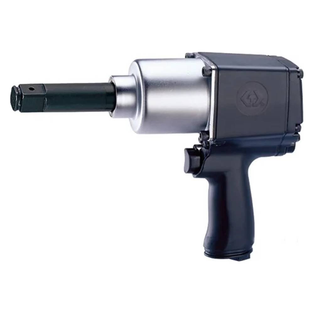 Пневматический ударный гайковёрт (3/4", 1085 Н·м) в удлинённой версии — профессиональный инструмент для работ с высокими требованиями к крутящему моменту. Оснащён ударным механизмом Twin Hammer («двойной молот»), в конструкции которого задействованы два молотка. Такое решение обеспечивает максимальную передачу усилия и позволяет достигать предельного крутящего момента при каждом ударе — незаменимое качество при работе с туго затянутыми или закисшими соединениями.