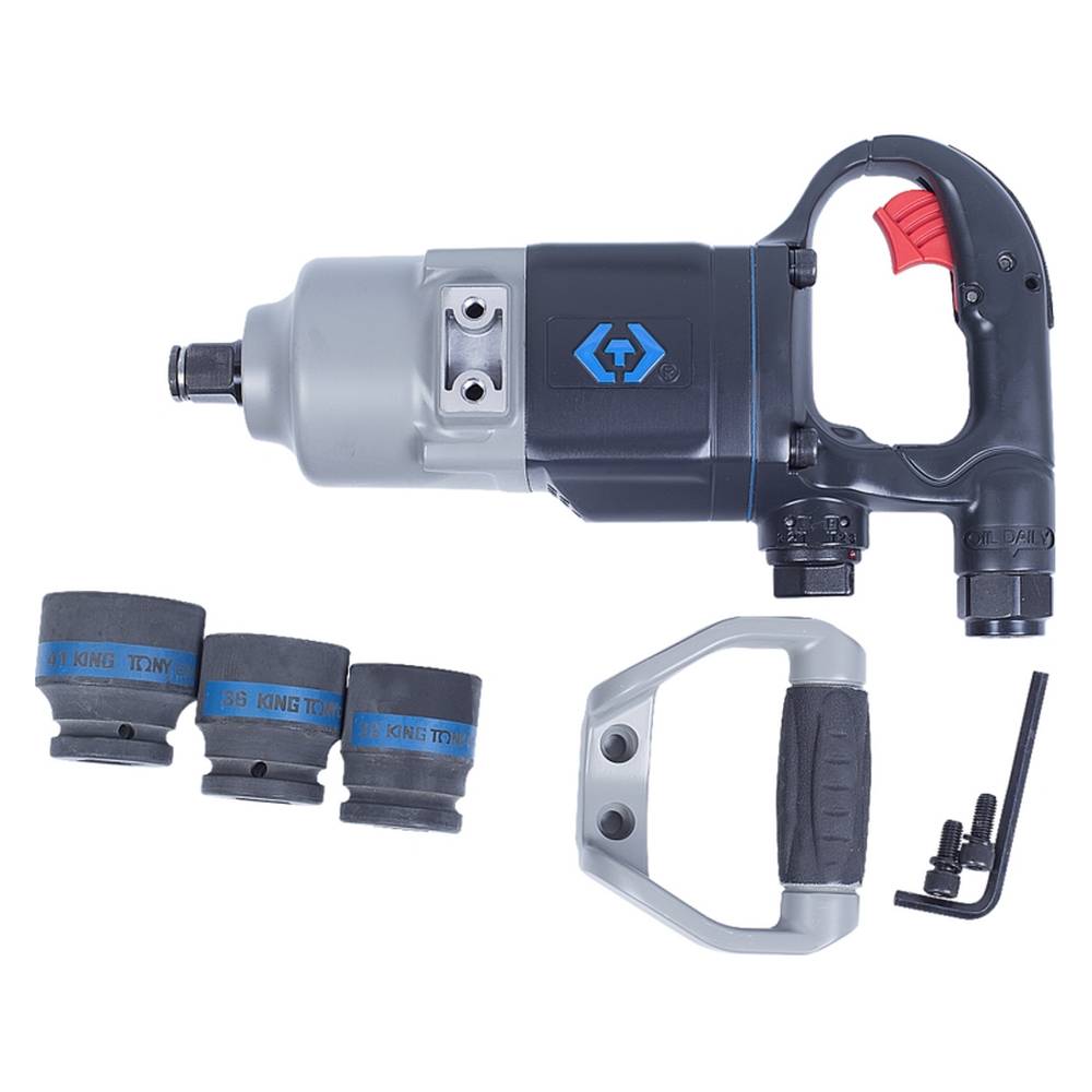 Пневматический ударный гайковёрт KING TONY P33671_160B (3/4", 2170 Н·м) — мощный профессиональный инструмент для сложных монтажных и демонтажных работ. В комплект уже входят три торцевые головки, что делает его готовым к применению сразу после приобретения.