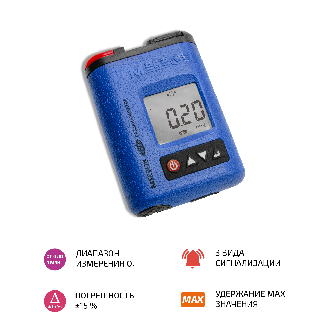 Газоанализатор (газосигнализатор) озона индивидуальный МЕГЕОН 08108 – портативный измеритель концентрации озона. Внесён в ГРСИ под номером 93332-24. Прибор обладает дисплеем с подсветкой для работы в местах с недостаточной освещённостью, визуальной, звуковой и вибро-оповещением превышения заданных уровней, памятью максимально измеренного значения и функцией автоматического отключения для экономии заряда батареи. Перечисленные качества сделают повседневную эксплуатацию простой и удобной. Элементом питания служит 3,7В аккумулятор формата 754060P. Для ношения предусмотрена стальная клипса с кольцом, она позволит носить анализатор на шнурке или карабине. Степень пыле-влаго защищённости соответствует стандарту IP65. Есть возможность самостоятельной калибровки. Будет чрезвычайно полезен во многих сферах деятельности. Функционал по достоинству оценят как профессионалы, так и начинающие пользователи.