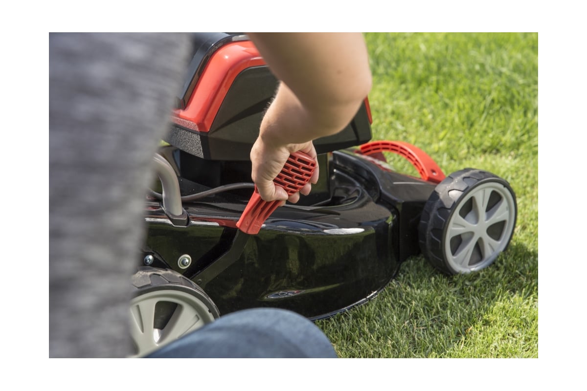 Регулировка высоты среза устанавливается одним рычагом в 7 положениях, что позволяет подобрать оптимальную высоту стрижки.