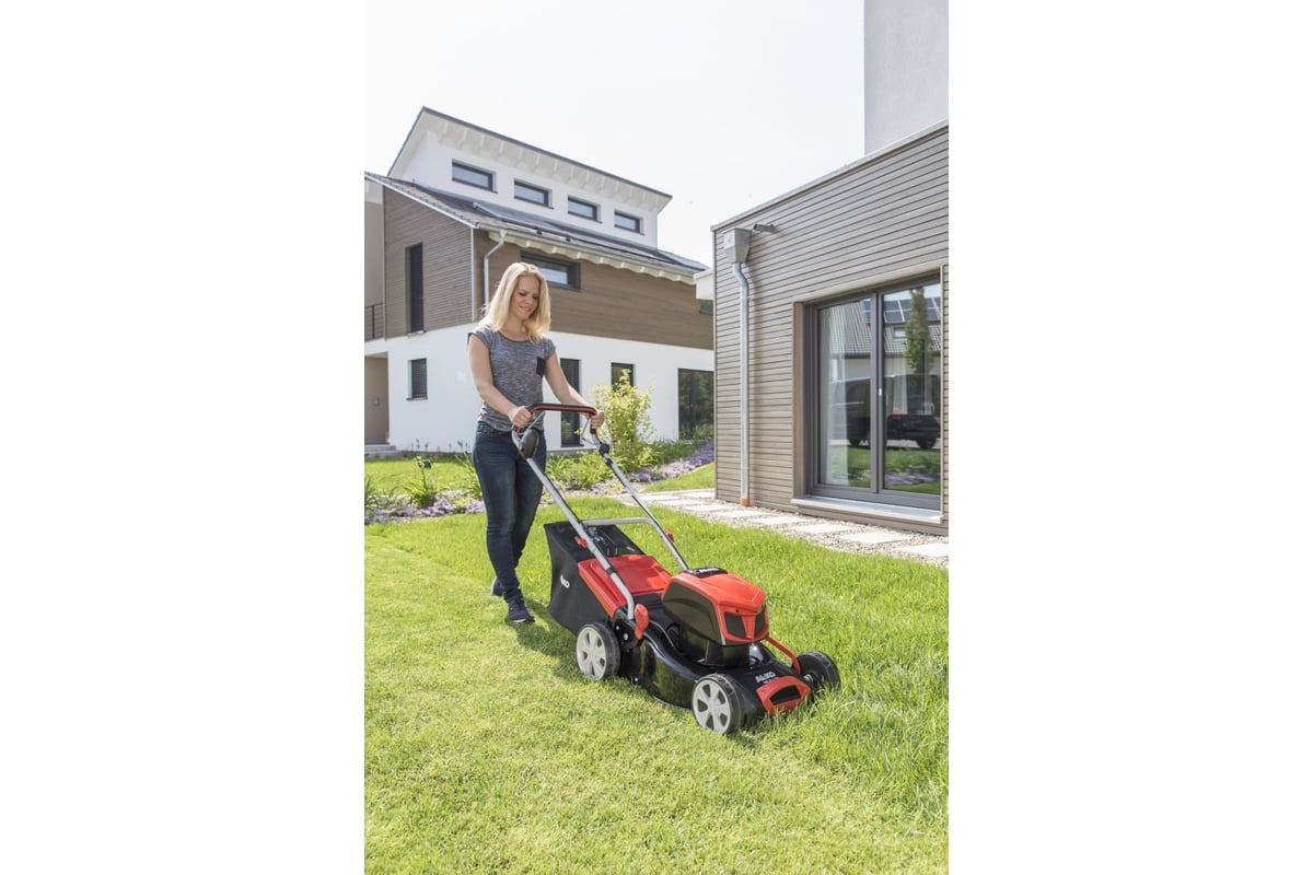 Газонокосилка AL-KO 42.9 SP Li EnergyFlex, акк. 113689 используется для подравнивания травы на приусадебном участке.