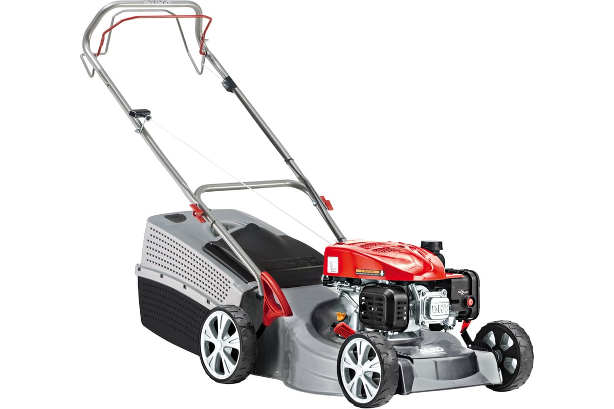 Высоту стрижки можно отрегулировать в 7-кратном диапазоне от 3 до 7 см с помощью специального рычага. Модель имеет рабочую ширину 46 см и энергосберегающий 1-скоростной колесный привод, что обеспечивает эффективное кошение в садах площадью до 1400 м2.