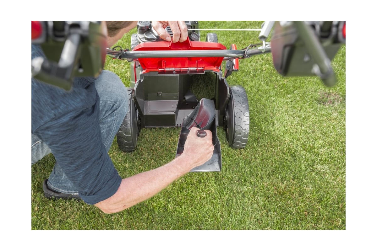 Вместительный травосборник гарантирует продолжительную работу без частых перерывов для его опустошения.