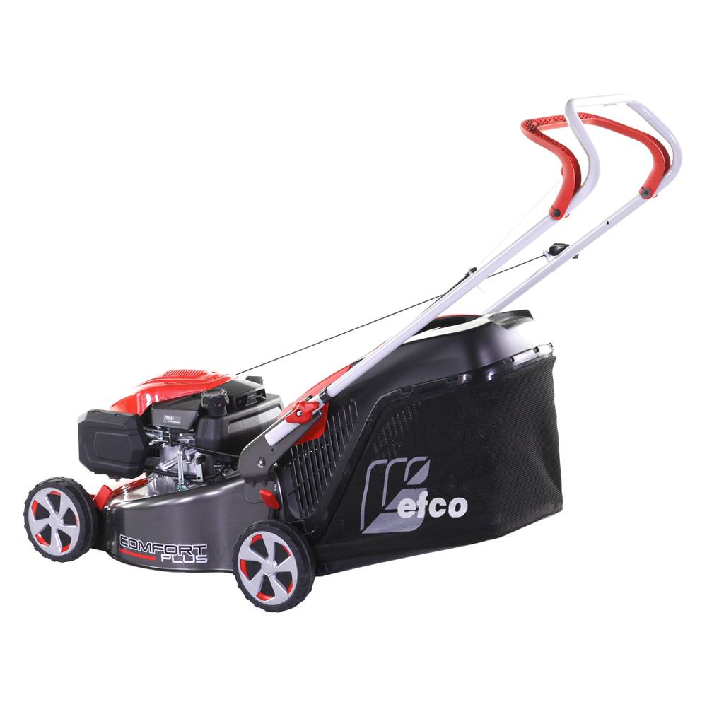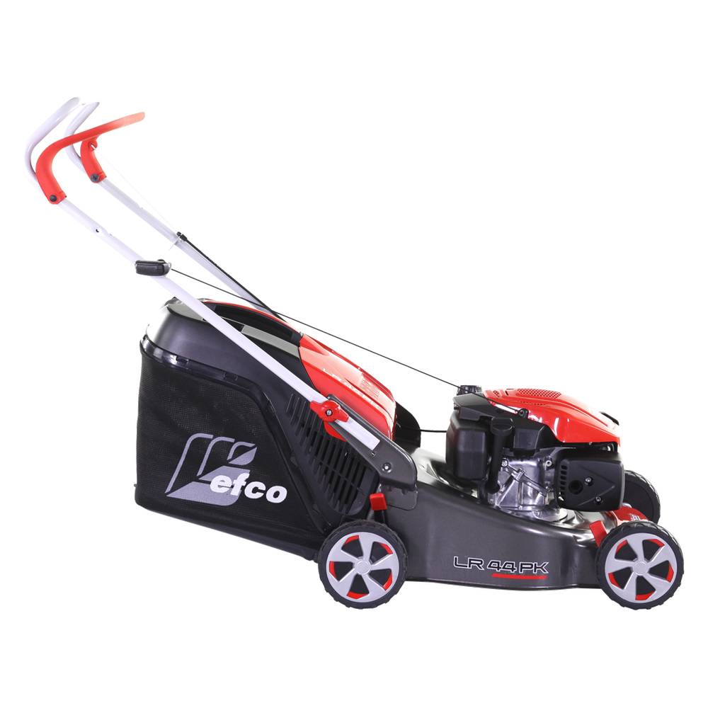 Газонокосилка EFCO LR 44 PK Comfort Plus – это несамоходная бензиновая модель с шириной кошения 41 см и двигателем собственного производства Emak K 605 OHV. LR 44PK оснащена травосборником с тканевым мешком для травы объемом 70 литров. Дека косилки изготовлена из высокопрочной стали, поэтому ей не страшны столкновения с препятствиями. Высоту кошения на LR44 PK Comfort Plus можно регулировать на каждом колесе отдельно в диапазоне от 28 до 75 мм. Функции бокового выброса и мульчирования на этой модели не предусмотрены.