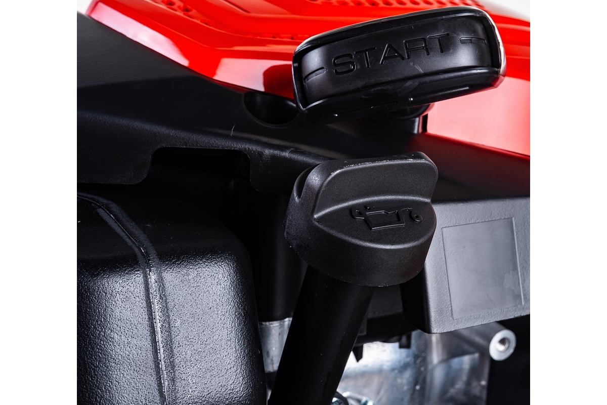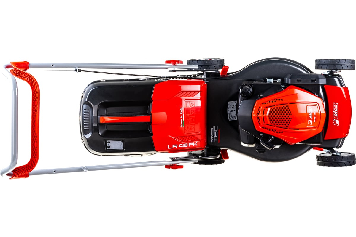 Высота кошения на LR48 PK Comfort Plus имеет индивидуальную регулировку каждого колеса в диапазоне 28-75 мм. На этой модели не предусмотрена функция бокового выброса, а для кошения в режиме мульчирования необходимо приобрести дополнительное оборудование.