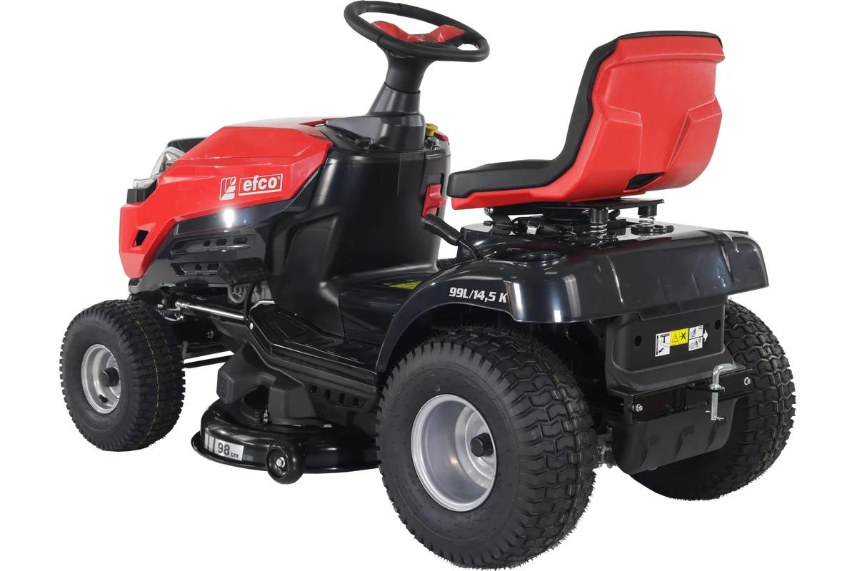 Газонокосилка с сиденьем (минитрактор) EFCO EF 99L/14,5 K предназначена для поверхностей площадью до 5000м2. Широкая зона кошения 980мм сокращает время работы за счет охвата большой площади за один проход. Удобно расположенный, практичный, 7-позиционный рычаг регулировки высоты среза с градуированной шкалой позволяет легко изменять желаемый уровень высоты среза. Газонокосилка имеет гидростатическую трансмиссию, которая позволяет бесступенчато регулировать скорость движения до 8,8 км/ч вперед и 4,5 км/ч назад. Малый радиус поворота обеспечивает высокую маневренность. Быстроразъемное соединение “Deck Wash System”, установленное прямо на режущей деке, позволяет направлять воду непосредственно вовнутрь, тем самым облегчая операции по очистке режущего аппарата. Большой стальной передний бампер обеспечивает надежность и прочность в случае непредвиденных ударов. Светодиодные фары обеспечивают хорошую видимость даже в условиях низкой освещенности. Удобное эргономичное сиденье обеспечивает максимальный комфорт при длительной работе.