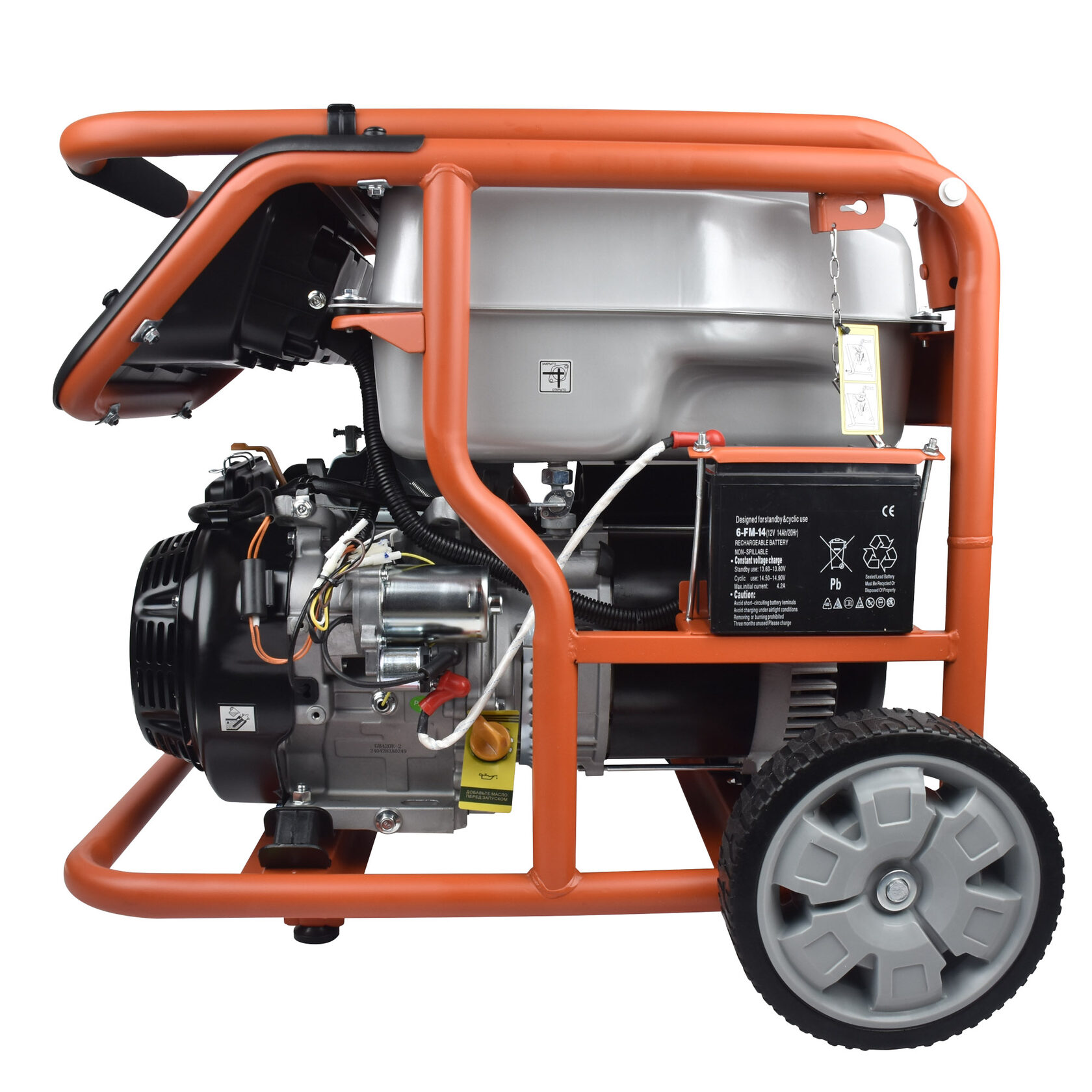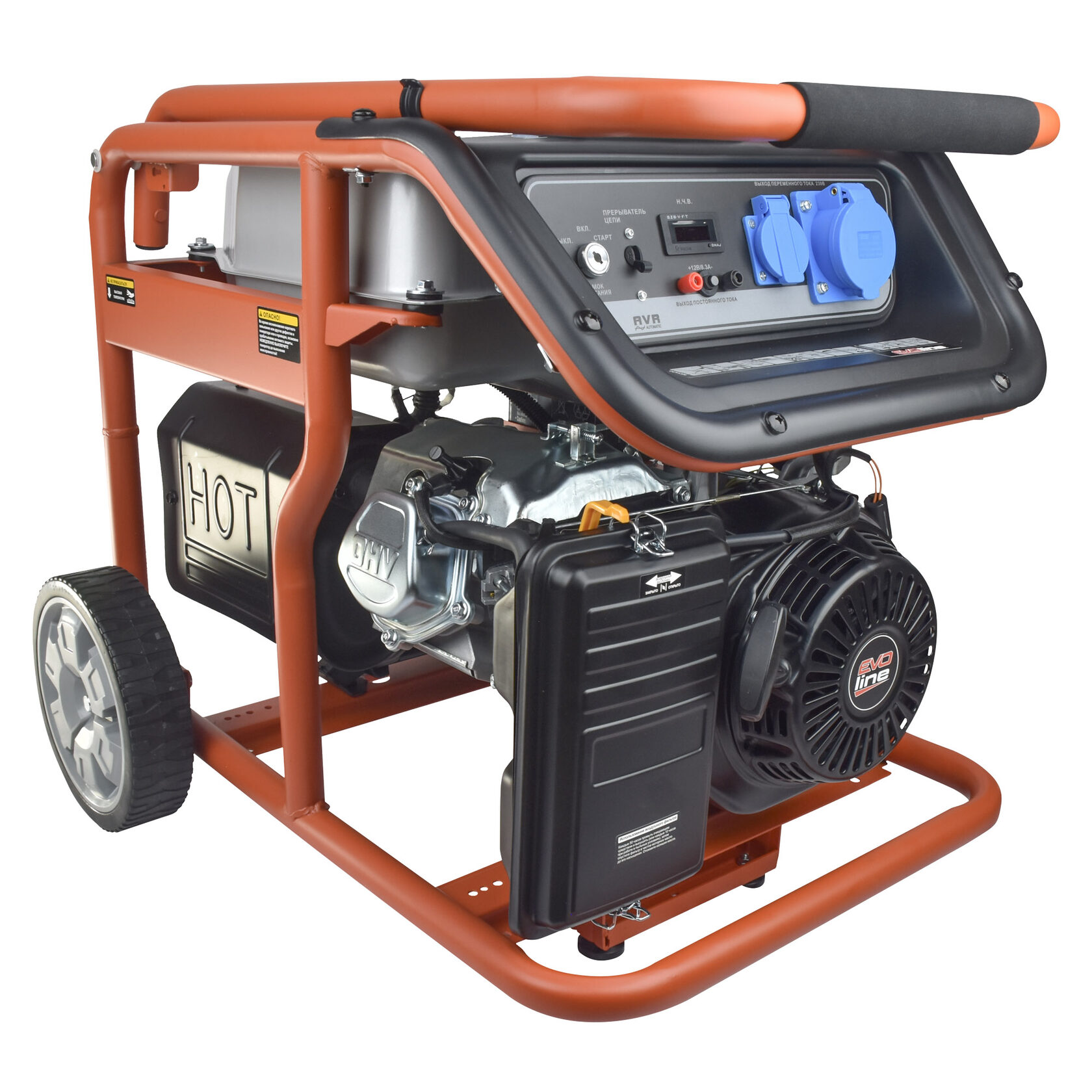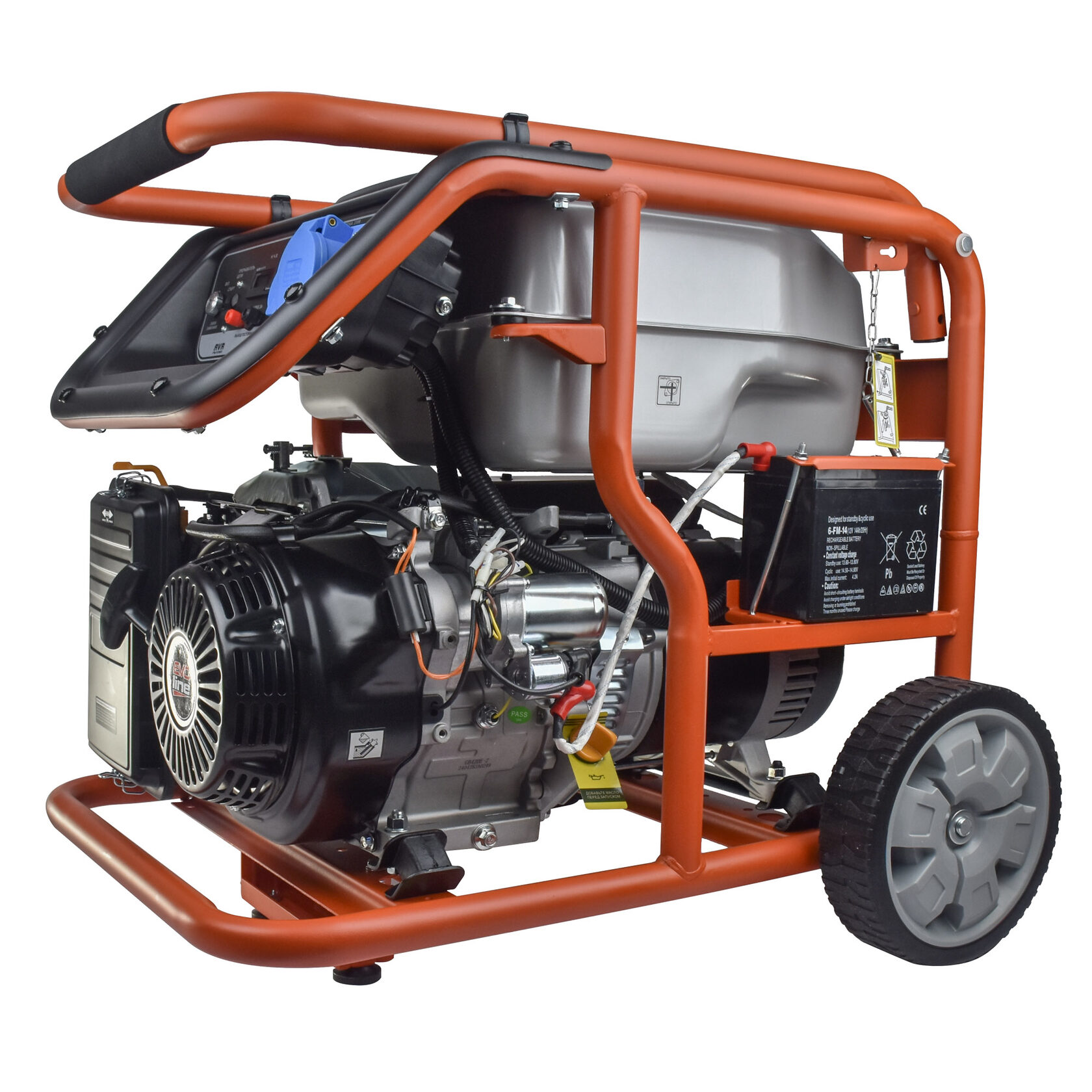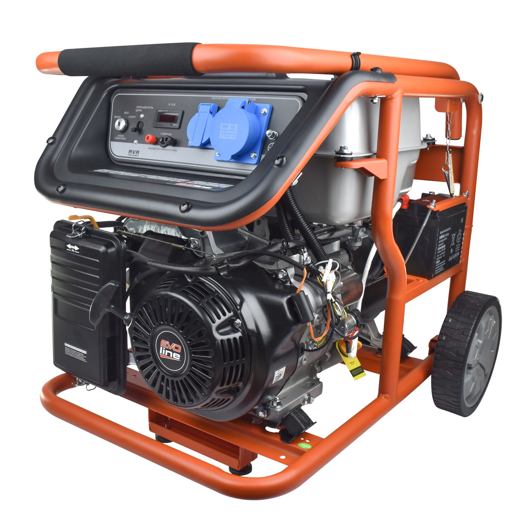 Электрогенератор EVOline KB 7000 E – бензиновый однофазный (1 фазный) генератор с максимальной мощностью 6,5 кВА. Силовым агрегатом данной модели является четырехтактный двигатель ZONGSHEN GB 420 E. Рама выполнена из высококачественной стали, которая служит не только для защиты двигателя, но и для удобной транспортировки электростанции. Объем топливного бака составляет 32 литра, что дает примерно 11 часов непрерывной работы в зависимости от нагрузки. Уровень шума при работе генератора составляет 76,5 дБ. Данная модель идеально подходит как для дома, так и для малого или среднего бизнеса. Оснащена транспортировочным комплектом с колесами, счетчиком мото-часов, электростартером и 2-мя розетками (одна из которых - силовая, т.е. на 32А), имеет размер (70х53х59 мм) и вес (90 кг). Гарантия составляет 2 года.