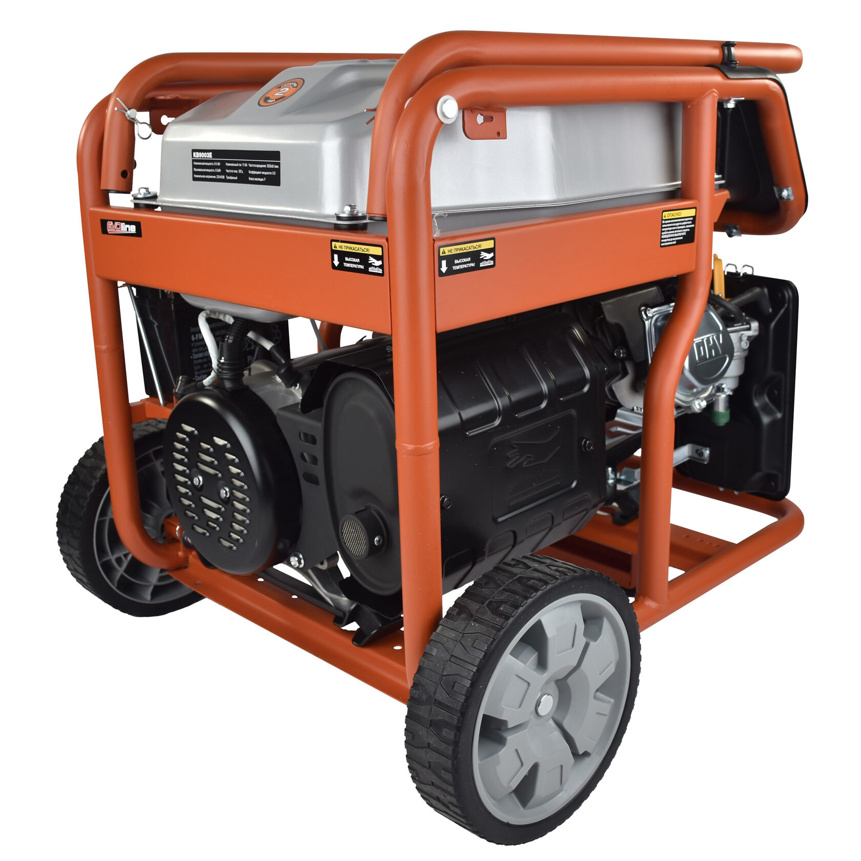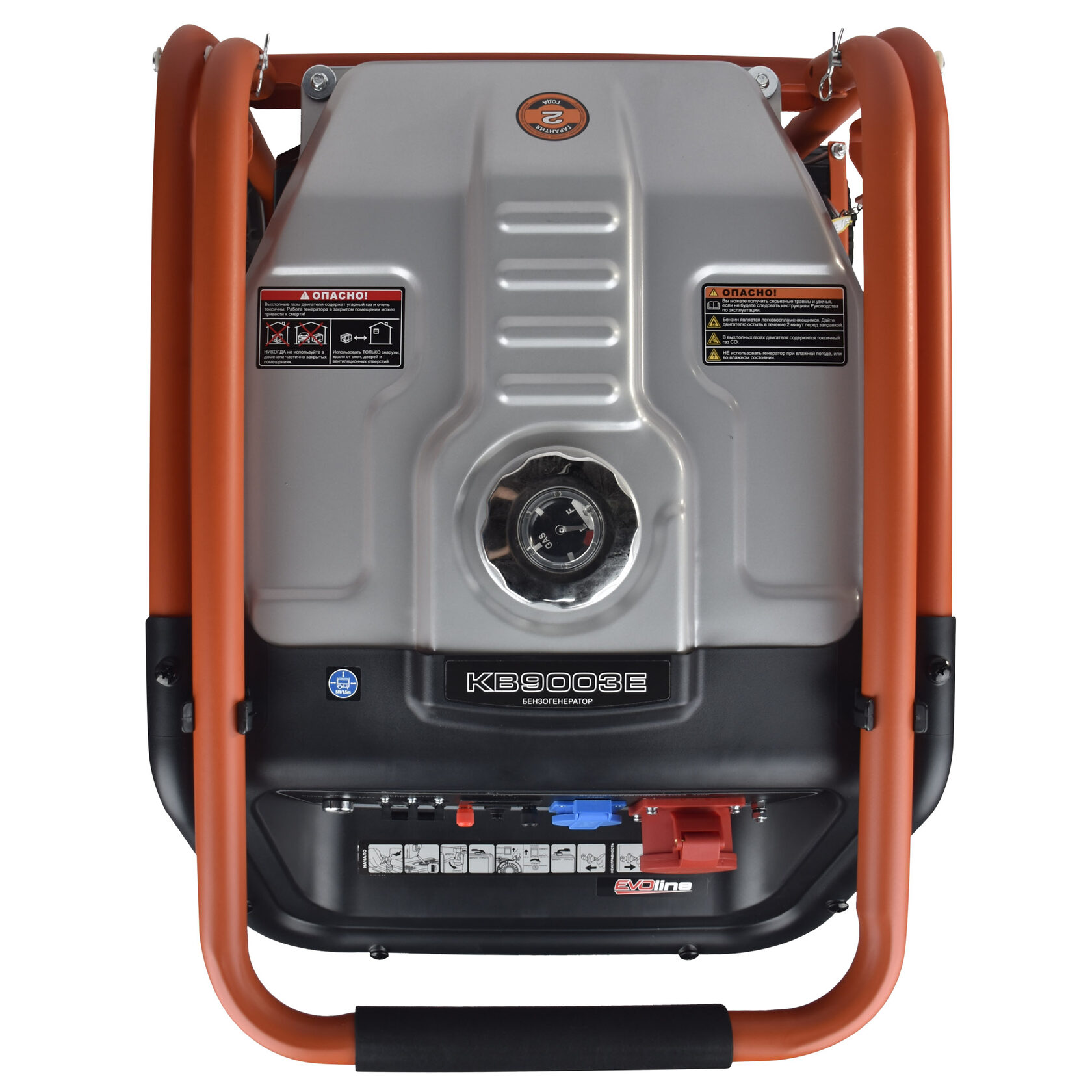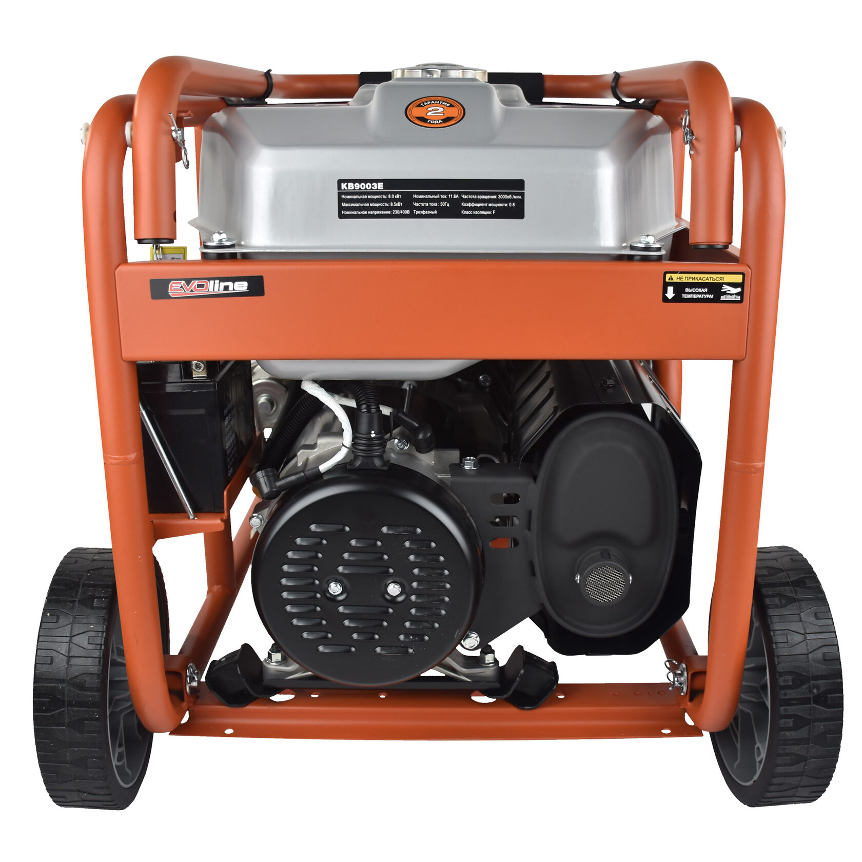 Электрогенератор EVOline KB 9003 E – бензиновый трехфазный (3 фазный) генератор с максимальной мощностью 8,5 кВА. Силовым агрегатом данной модели является четырехтактный двигатель ZONGSHEN GB 460 E. Генератор оснащен электрическим запуском. Рама выполнена из высококачественной стали, которая служит не только для защиты двигателя, но и для удобной транспортировки электростанции. Объем топливного бака составляет 32 литра, что дает примерно 11 часов непрерывной работы в зависимости от нагрузки. Уровень шума при работе генератора составляет 76,5 дБ. Данная модель идеально подходит как для дома, так и для малого или среднего бизнеса. Оснащена транспортировочным комплектом с колесами, счетчиком мото-часов, электростартером и 2-мя розетками, имеет размер (700х530х590 мм) и вес (100 кг). Гарантия составляет 2 года.