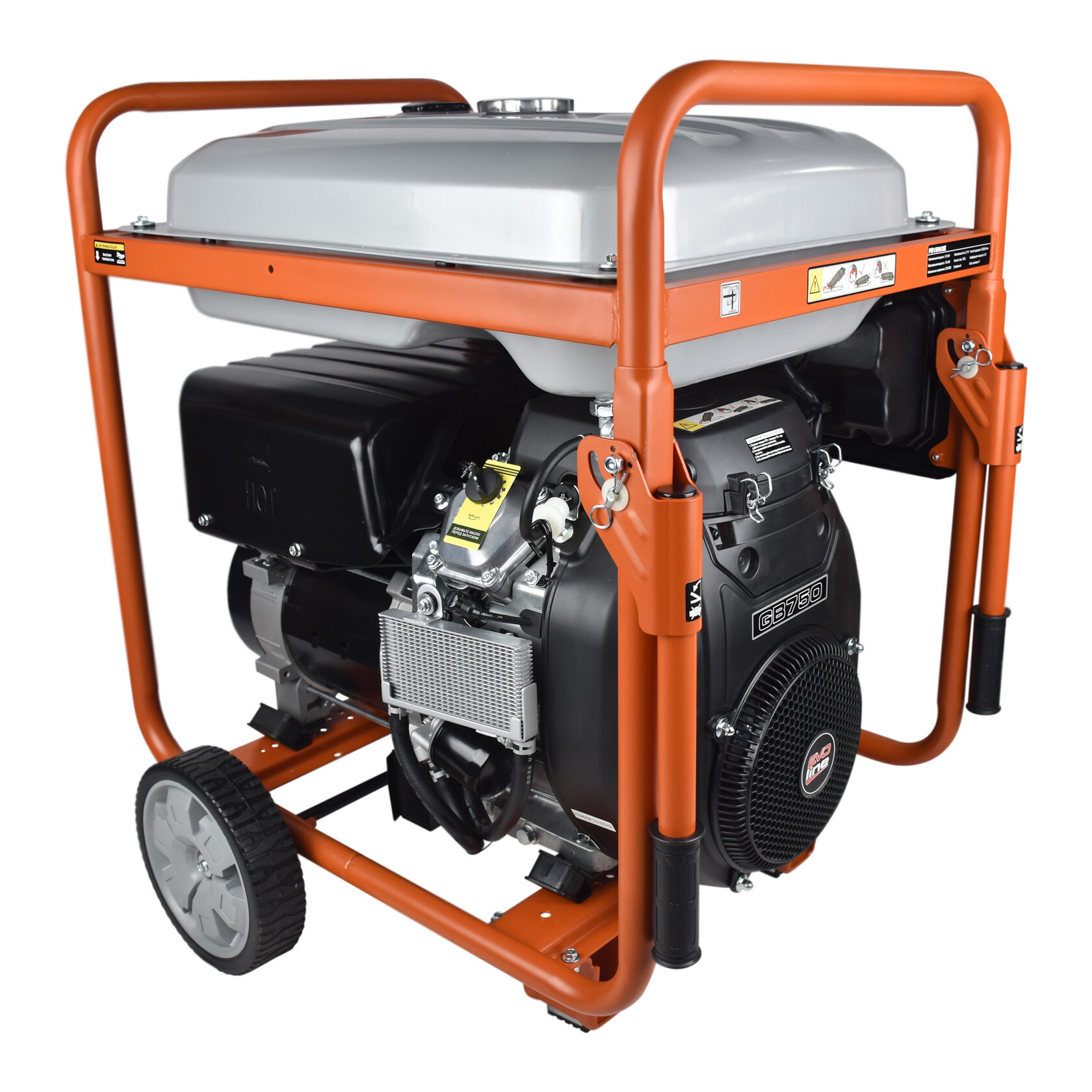 Трехфазный EVOline PB 15003 E с электрозапуском. Силовым элементом является Zongshen GB 750 с рабочим объемом 750 см3. А также оснащен системой декомпрессии и транзисторным зажиганием. Система контроля уровня масла в картере разъединяет цепь зажигания при критическом уровне масла. На корпусе предусмотрены 3 розетки (16А/ 32А/ трехфазная). Рама защищает генератор от внешних воздействий. Генератор бензиновый EVOline PB 15003 E подойдет для загородного дома и малого бизнеса.