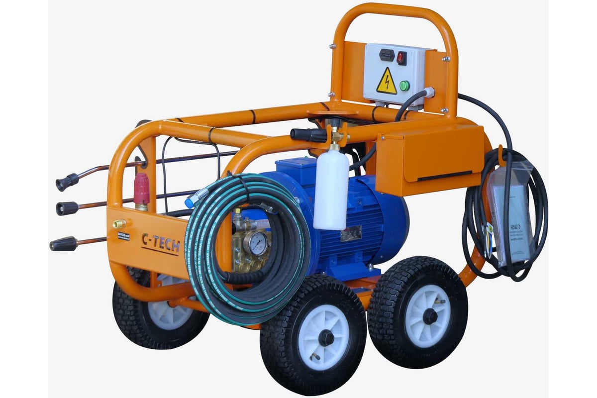 Гидроструйный аппарат C-TECH высокого давления разработан для профессионального использования в различных отраслях. Его мощность 11 кВт и давление 350 бар позволяют быстро и эффективно удалять загрязнения с любых поверхностей.