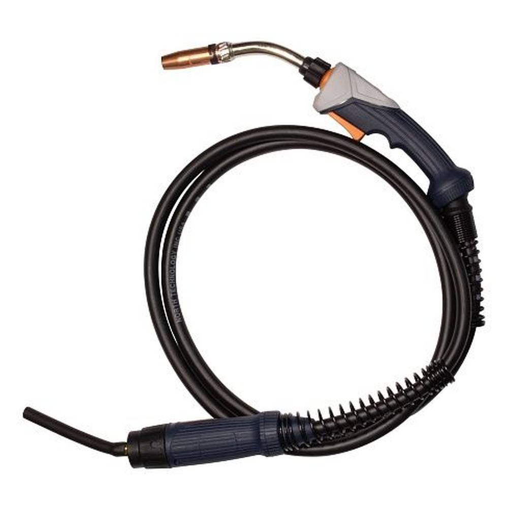 Горелка для аппарата (MIG/MAG) полуавтоматической сварки с поворотным гусаком. В горелку установлен красный тефлоновый канал для работы с проволокой 1.0-1.2мм. В комплекте 2 токосъёмных наконечника (AL): 1.0мм и 1.2мм.