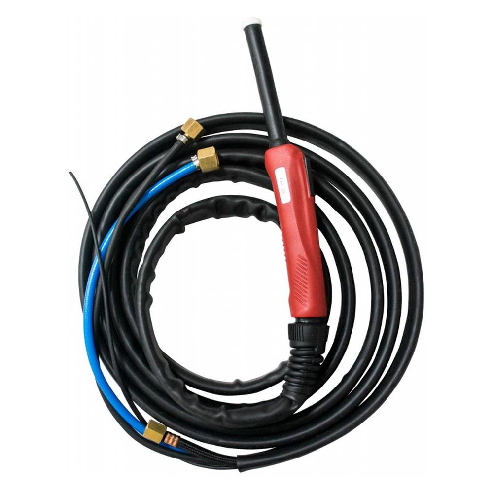 Горелка оснащена по ЕВРО стандарту: силовой шланг М12х1, газовый шланг 1/4G, водный шланг 3/8G. В комплекте поставки управляющие разъёмы 2/3/5 pin. Горелка должна дополнительно укомплектовываться силовым разъемом TIG PLUG 50 со шлангом на воду 0.6м с б/р соединителем.